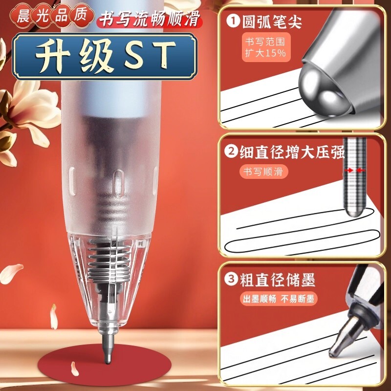 晨光按动中性笔黑色笔速干顺滑高颜值红蓝碳素笔考试办公用签字笔
