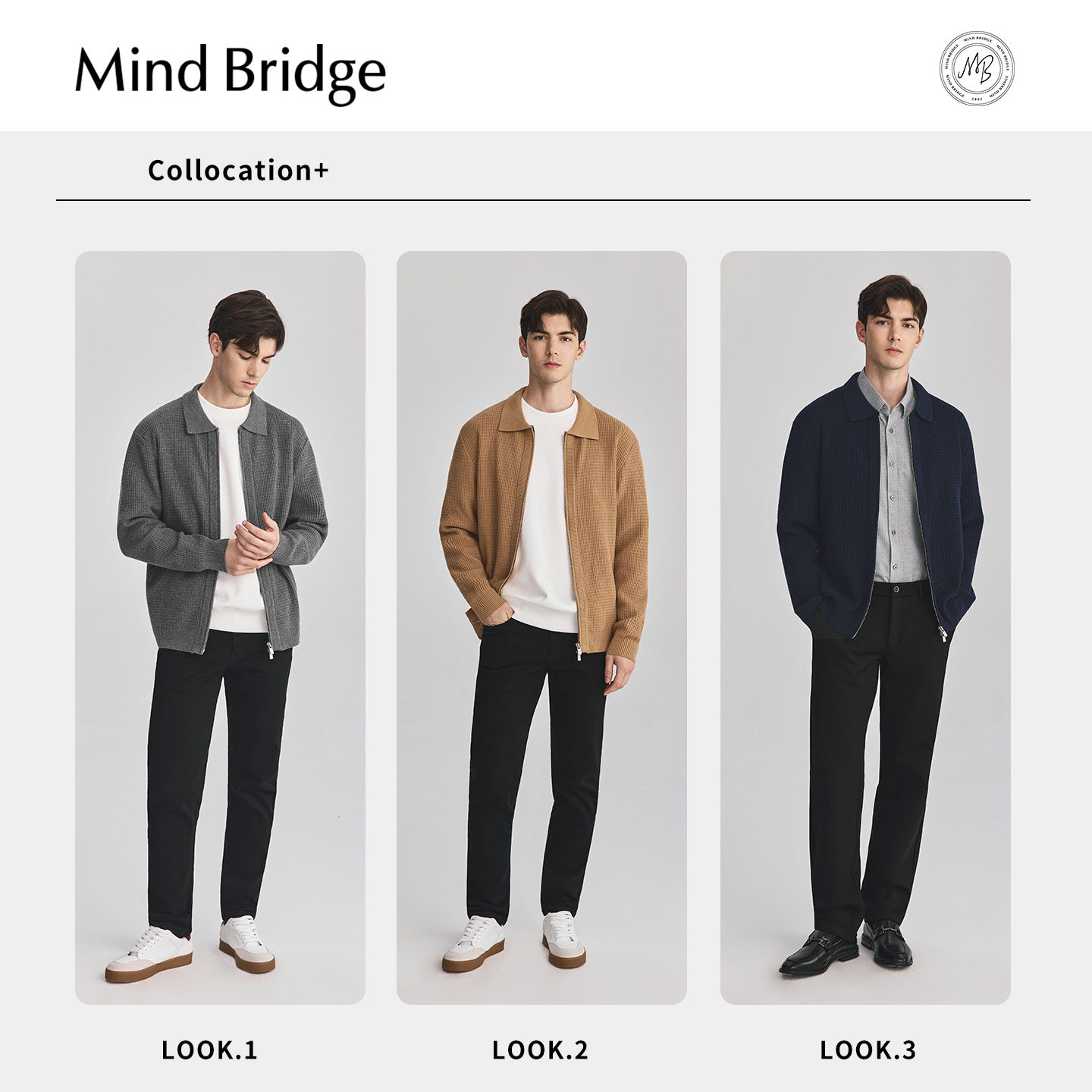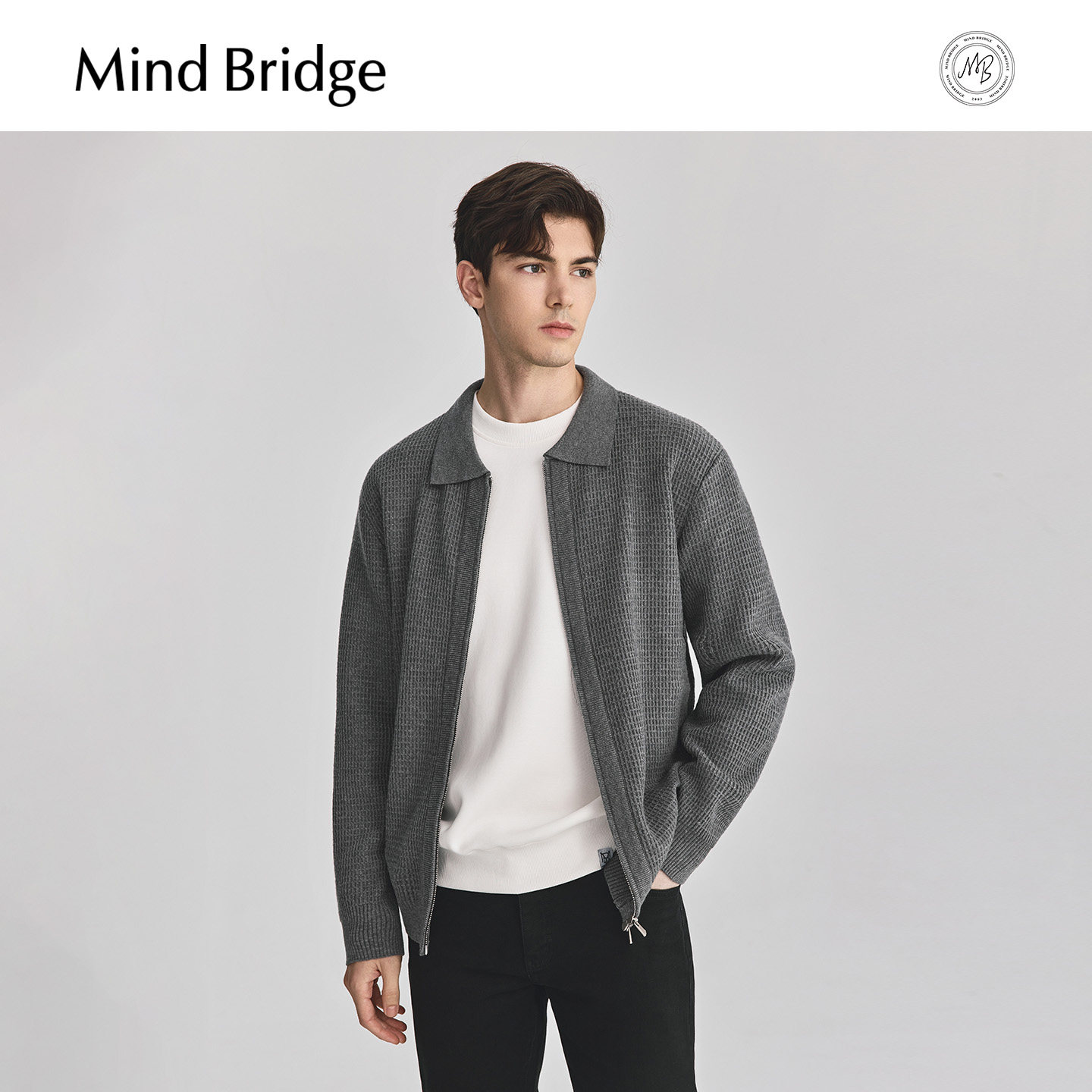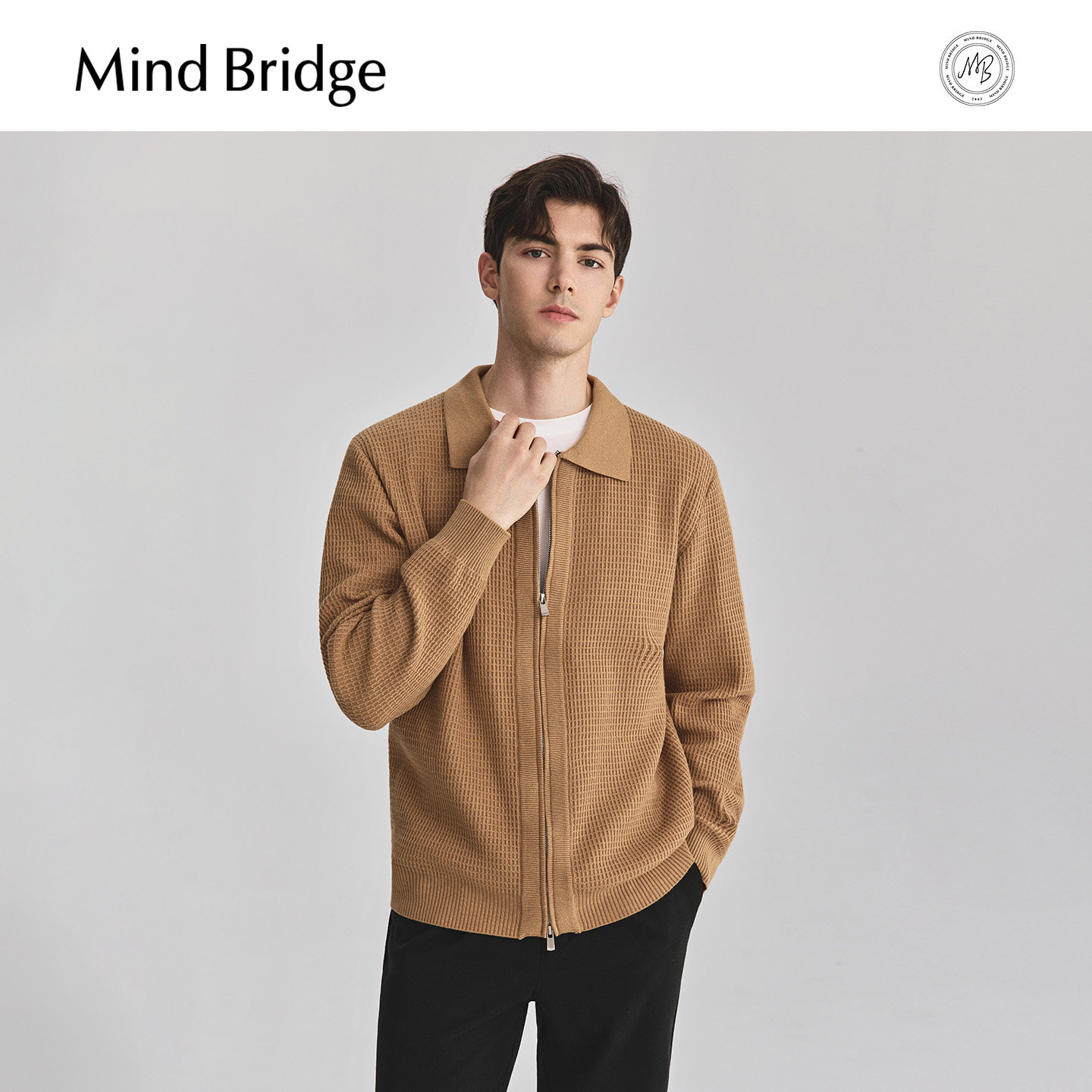 Mind Bridge男士休闲华夫格针织外套2025年秋纯色肌理感毛衣开衫