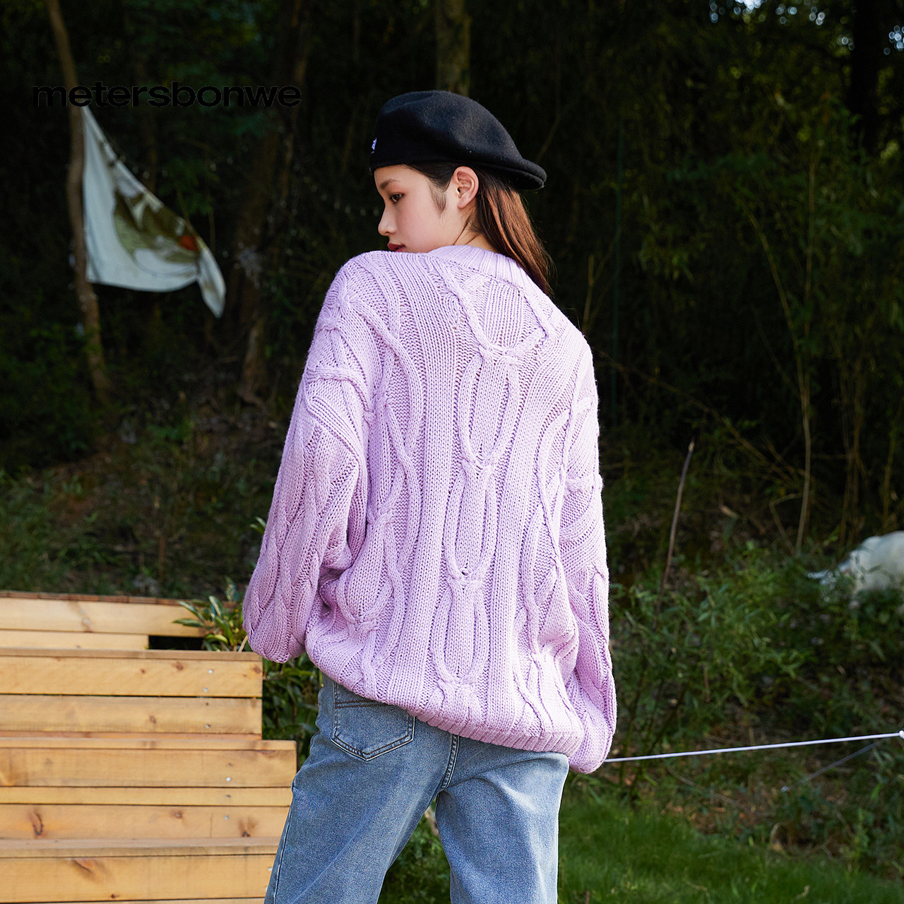 NVPVVA 秋冬新款学院风慵懒翻领绞花毛衣麻花宽松套头LOGO针织衫