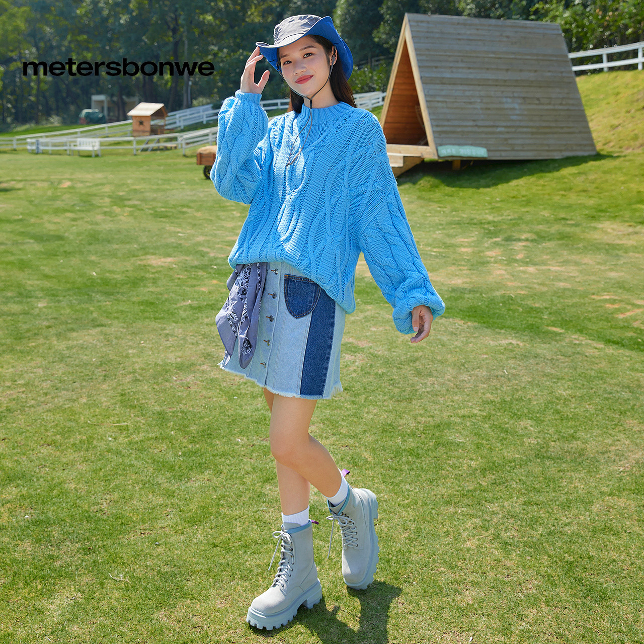 美特斯邦威毛衣女秋冬高领宽松甜美简约纯色宽松舒适百搭长袖毛衫
