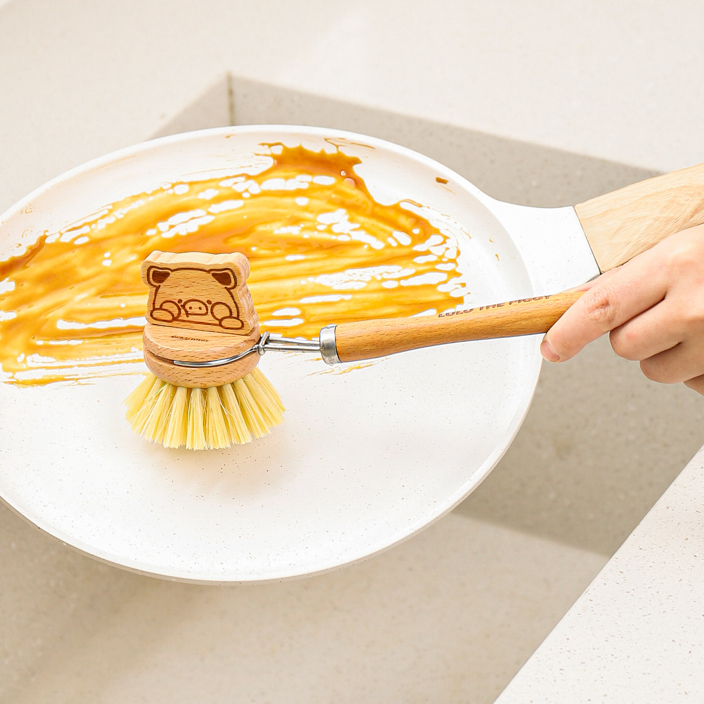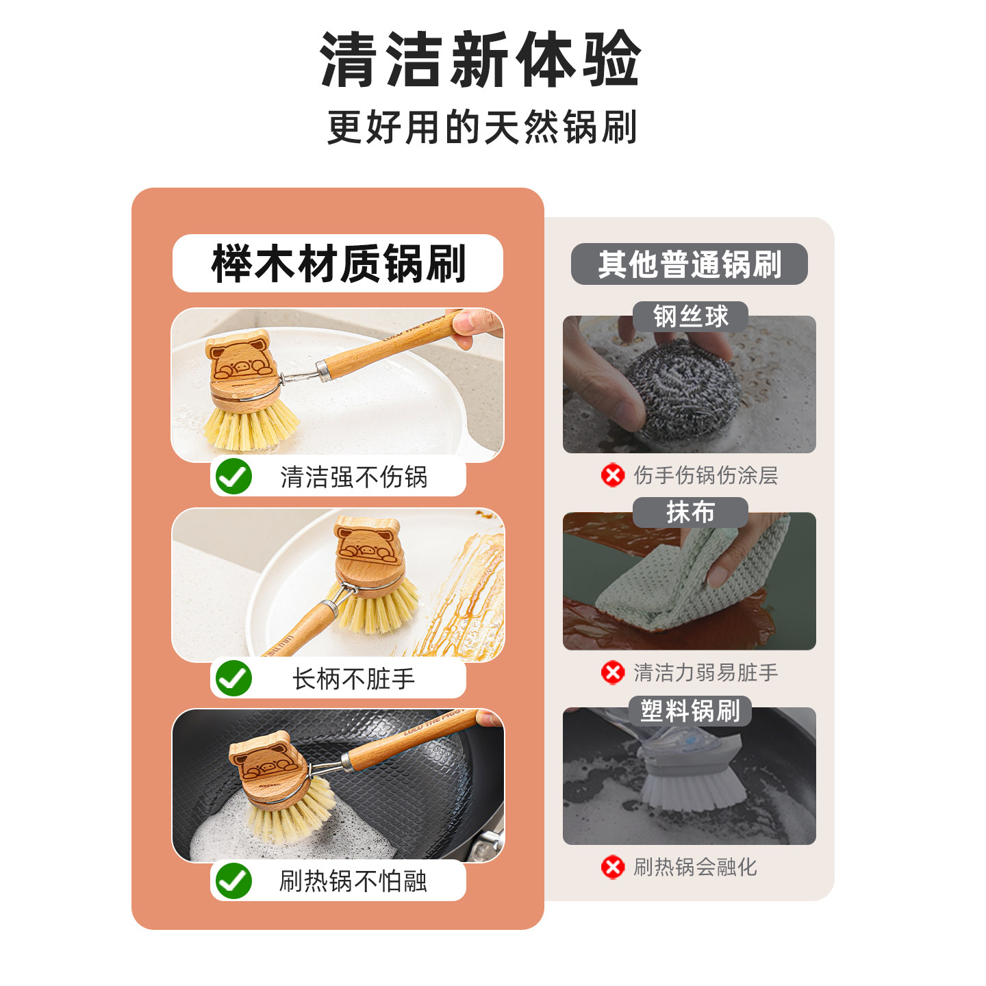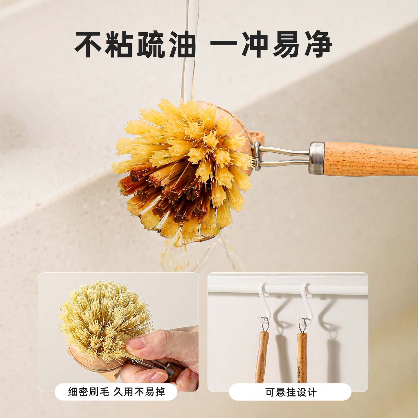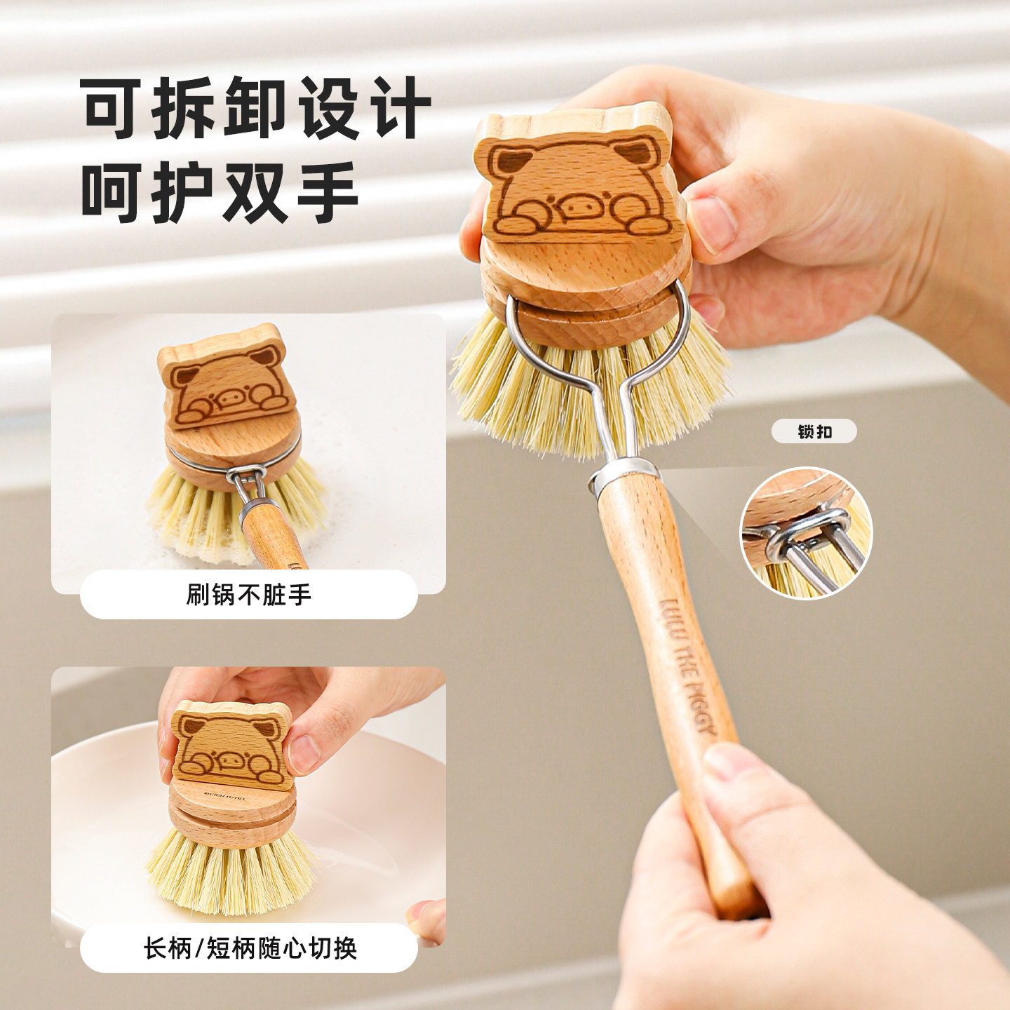可拆卸设计/植物纤维/不沾油污/加长手柄