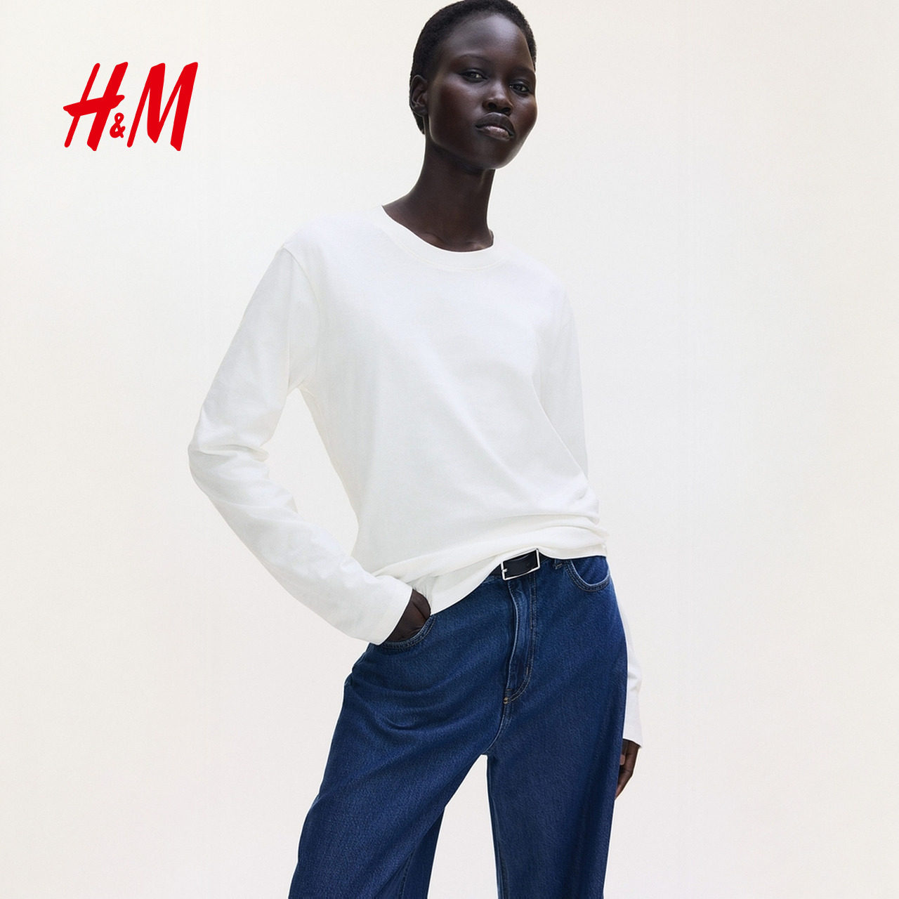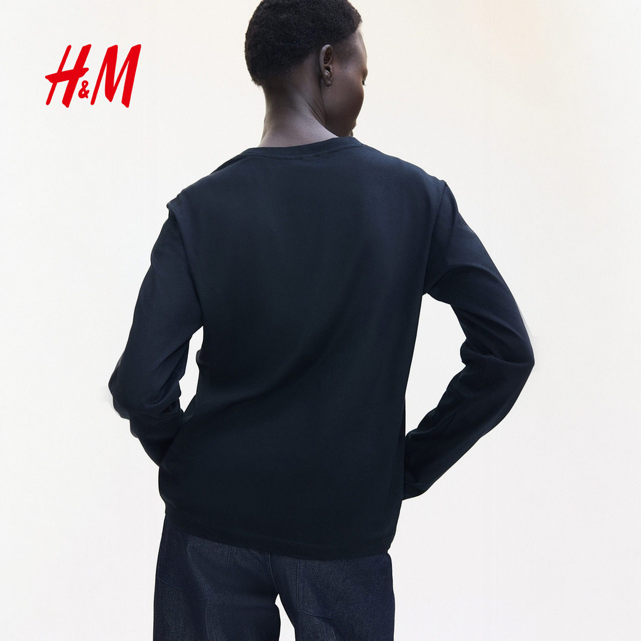 HM女装T恤2025冬季新款圆领休闲舒适棉质内搭时尚长袖上衣1304335