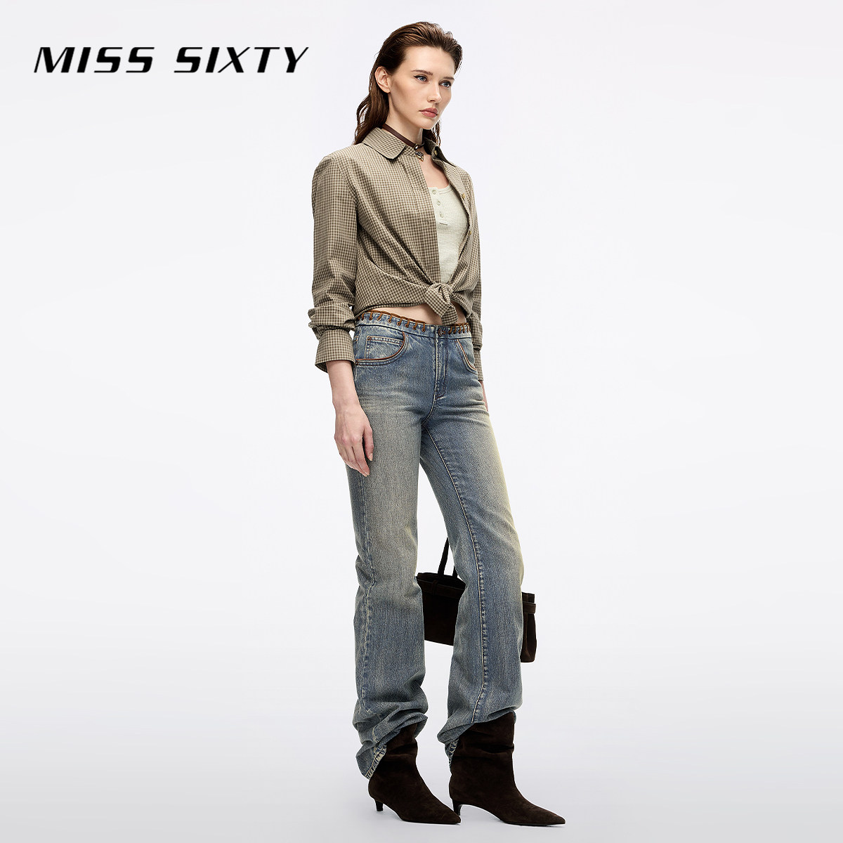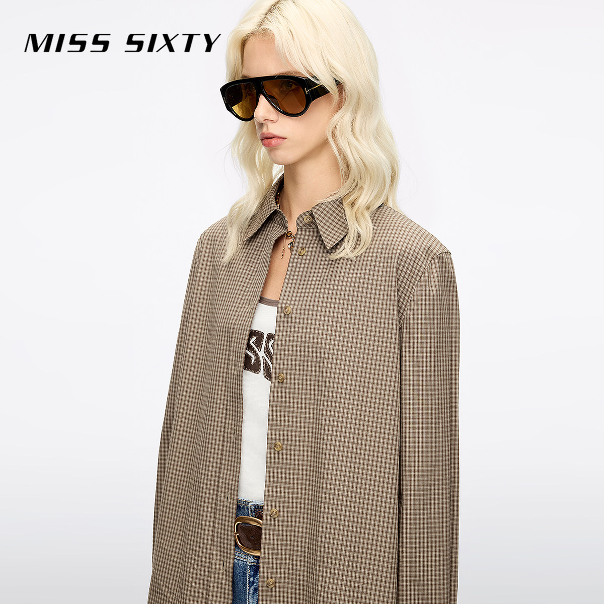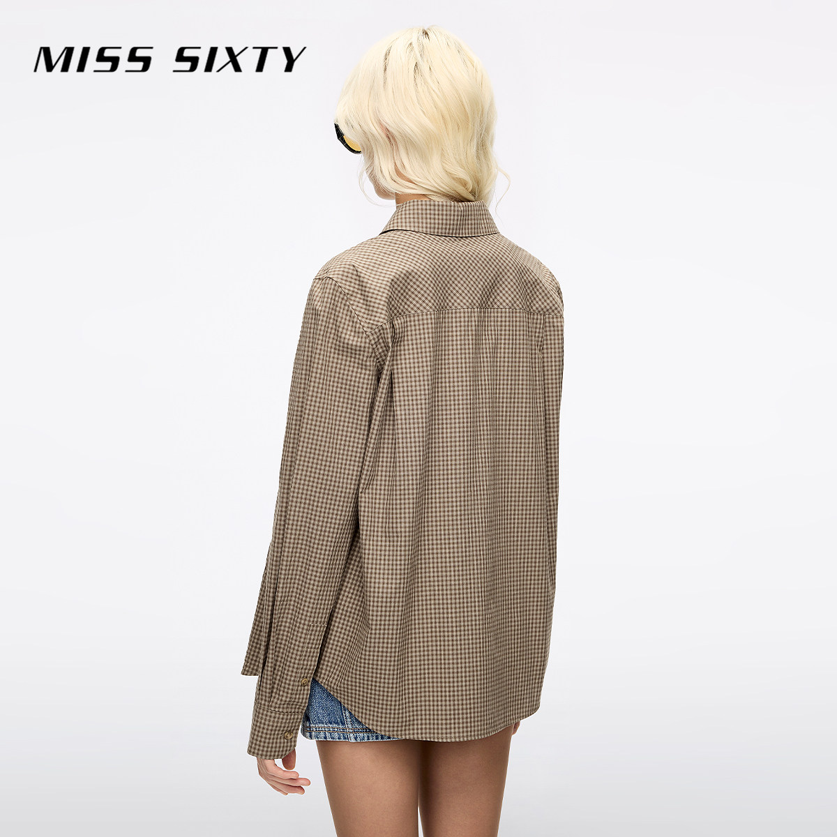 【杨幂同款】Miss Sixty25秋新款长袖衬衫女复古格子棉质上衣中长