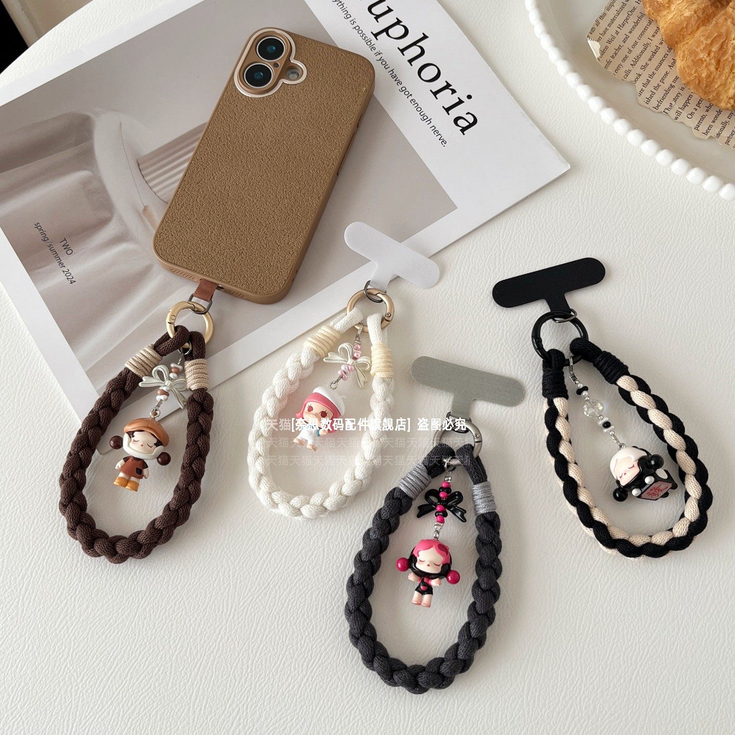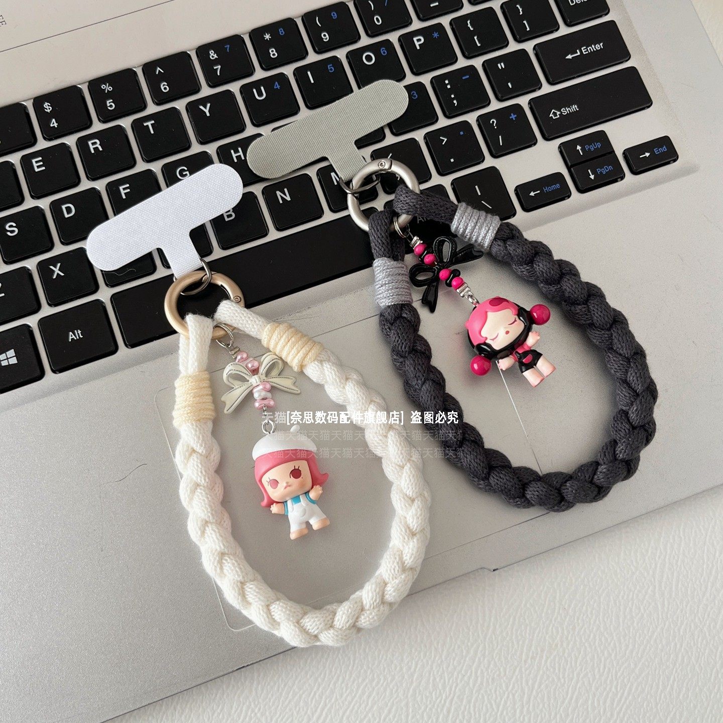 泡泡玛特sp萌粒手机挂绳链正版包挂件手工编织棉手绳可爱好看Molly串珠挂坠原创手腕款發财麻将挂饰潮垫片壳