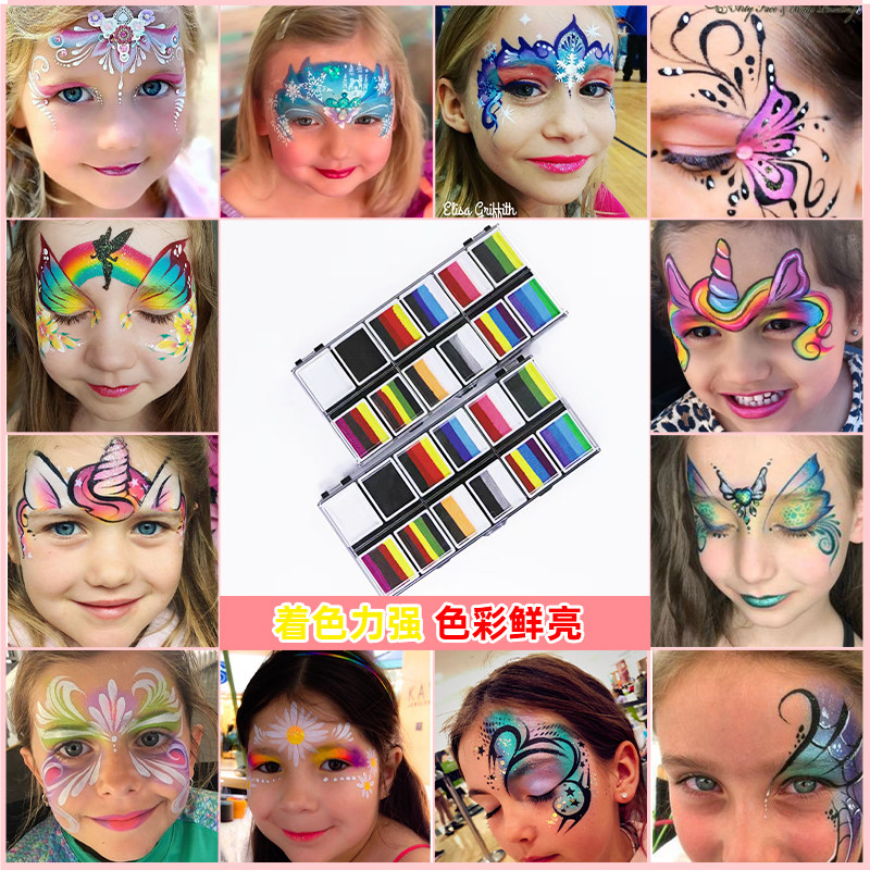 儿童舞台妆面部彩绘颜料荧光珠光哑光水溶性新年节元旦水溶性