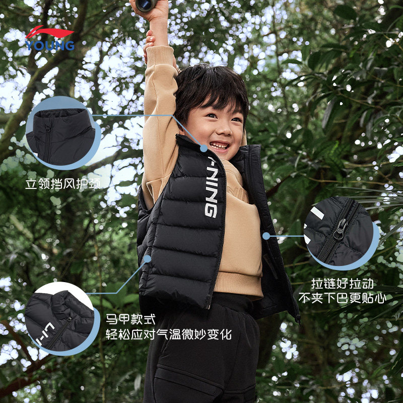 李宁羽绒马甲外穿儿童新款冬季秋冬新款轻薄男童装女宝小大童背心