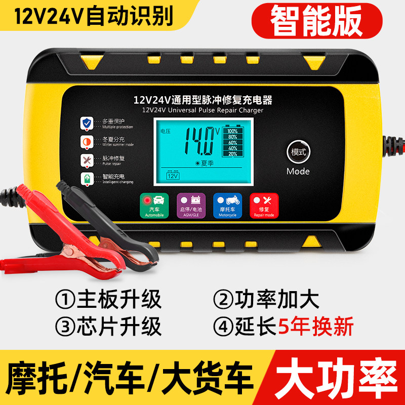 汽车电瓶充电器12v24v摩托车蓄电池充电器智能大功率修复型充电机