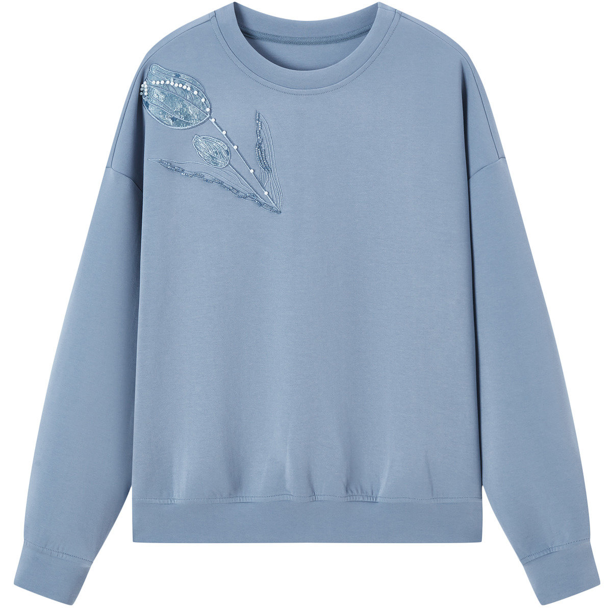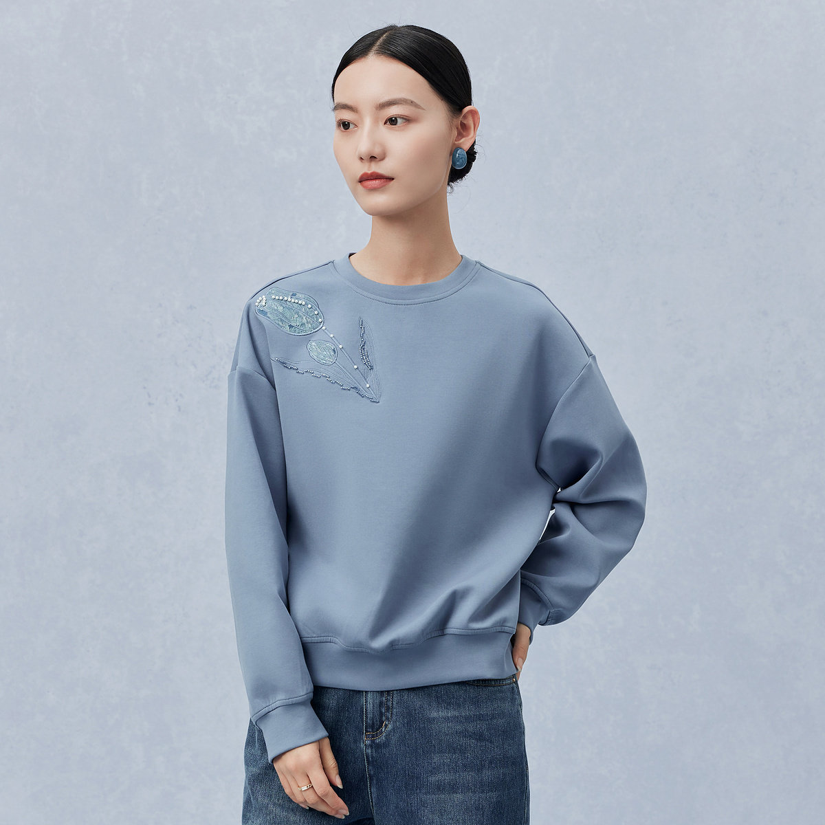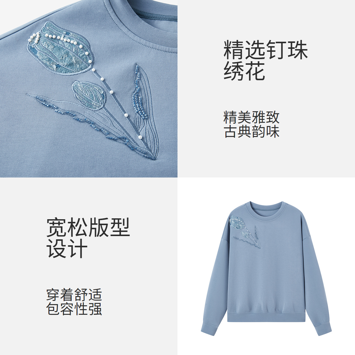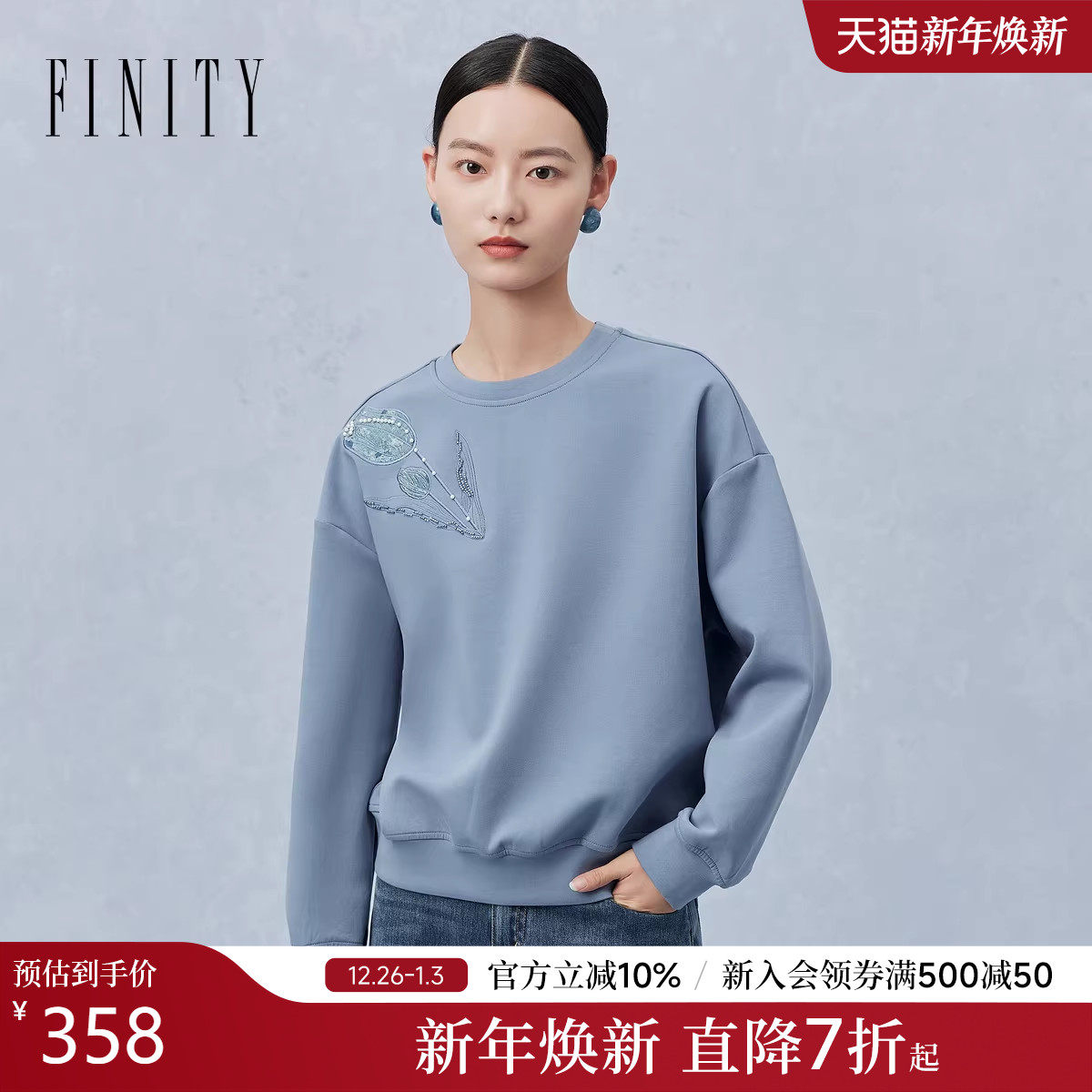 菲妮迪品牌卫衣2025秋新款简约休闲风圆领钉珠绣花时尚套头上衣女