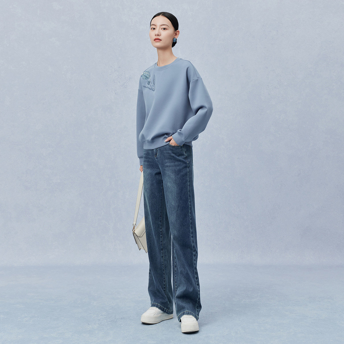 森马卫衣女设计感图案oversize发热抑菌冬绣花抓绒上衣慵懒学院风
