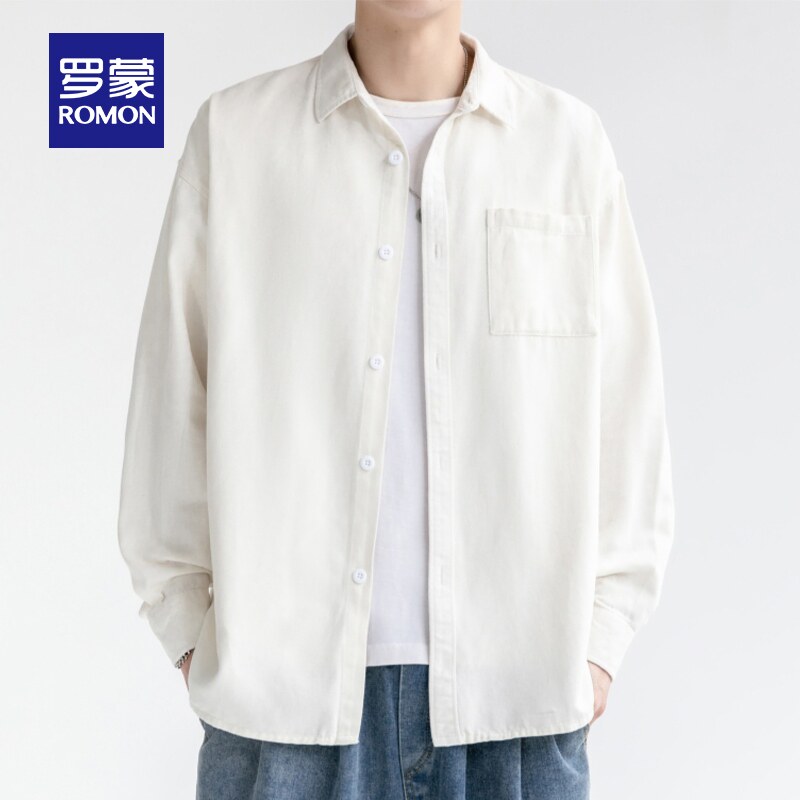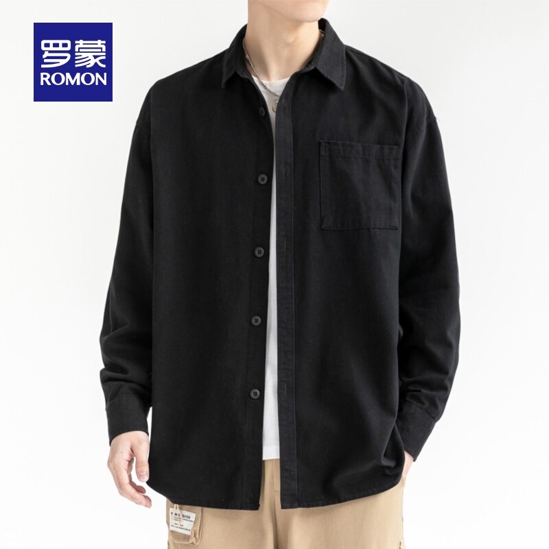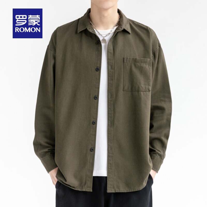 【纯棉】罗蒙长袖衬衫2026春季新款休闲工装宽松简约百搭男士衬衣