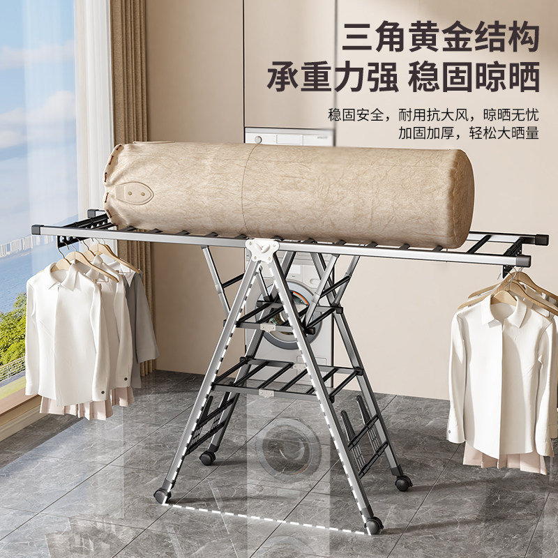 加粗加厚晾衣架落地折叠家用阳台卧室内简易可移动凉晒衣服被子杆