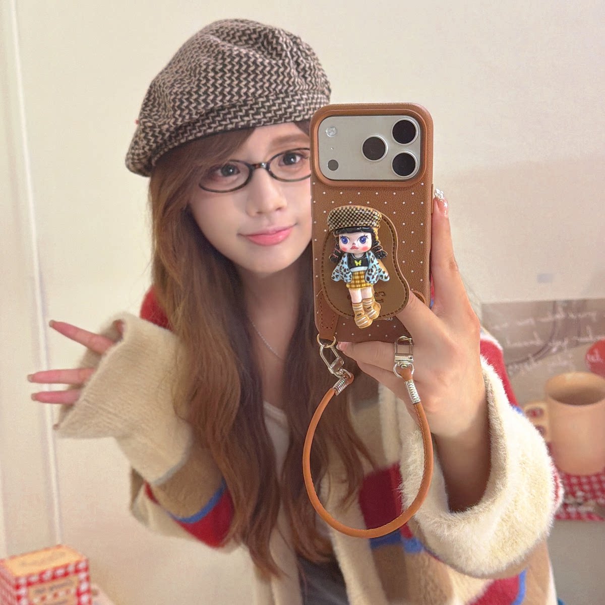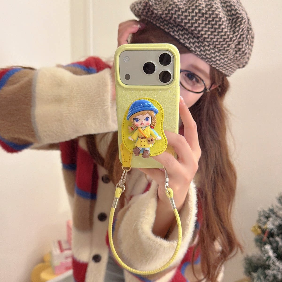 多巴胺公仔手提皮质适用苹果17手机壳新款高级感iphone16独特超好看外壳15/16promax/1413卡通可爱女款保护套