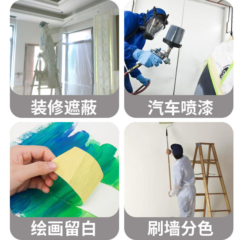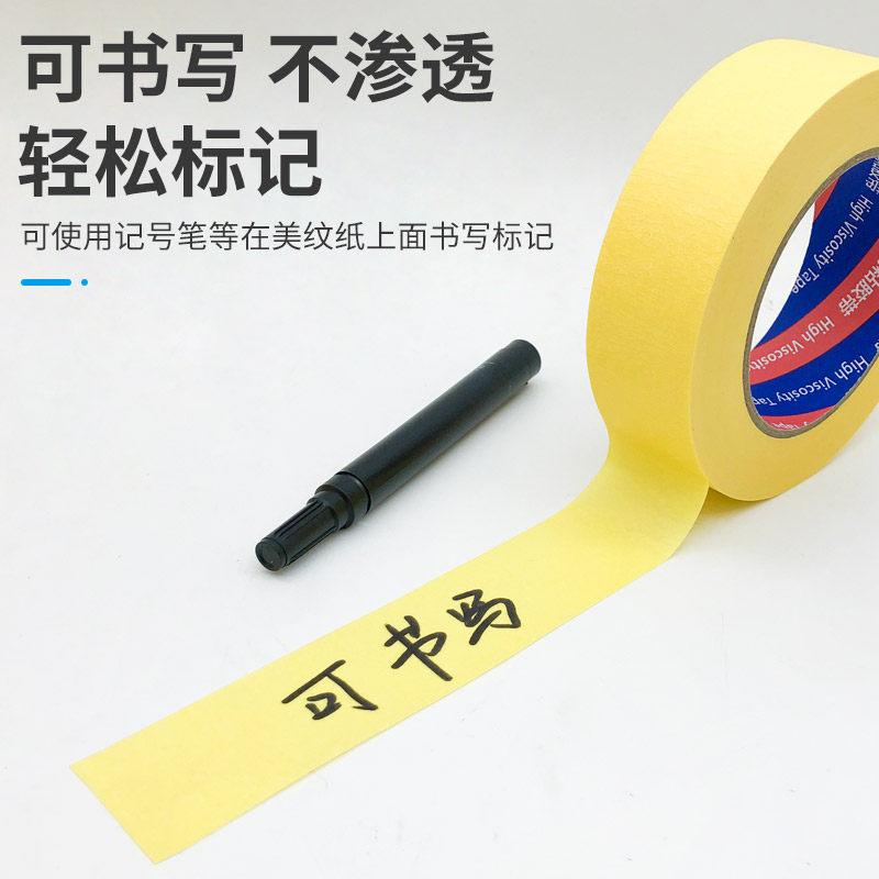 黄色高粘美纹纸胶带真石漆喷漆遮蔽高温手撕纸胶布装修喷涂分色纸