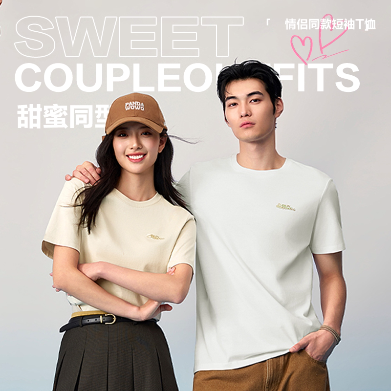 森马短袖T恤男装新款纯棉半袖情侣纯白圆领凉感白t休闲打底衫贴身