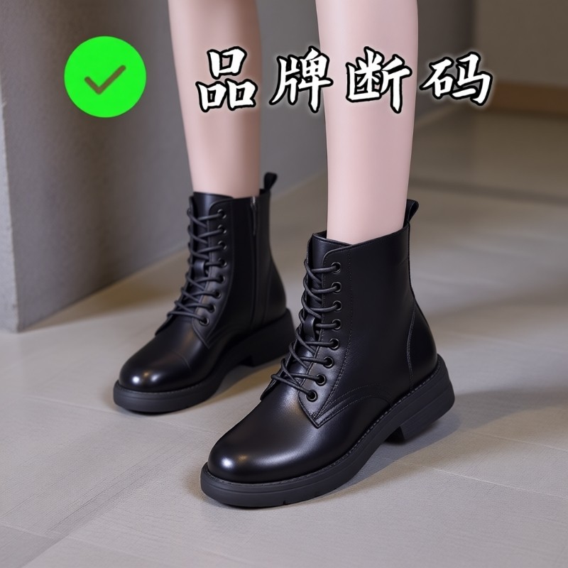 品牌真皮马丁靴女2025新款春秋时尚百搭平底女靴黑色牛皮平跟中跟