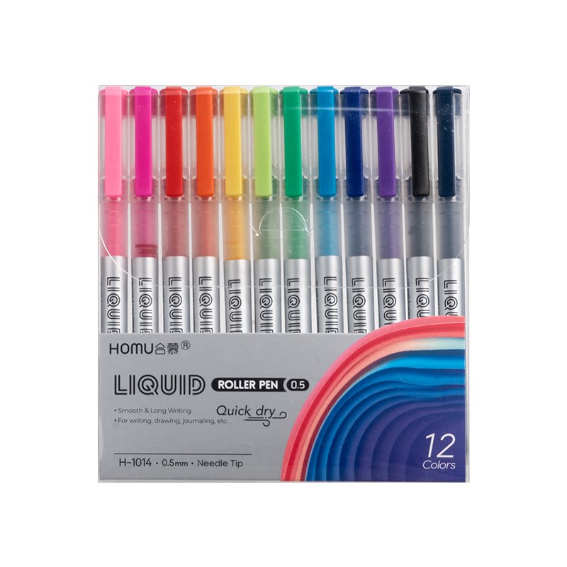 彩色直液式走珠笔速干重点标记做手账日系糖果色复古色学生用彩色笔做笔记专用手绘笔黑色红水笔中性笔套装
