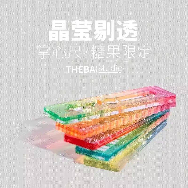 称心如意尺掌心尺糖果色手帐本迷你刻度尺透明波浪彩色小巧直尺子
