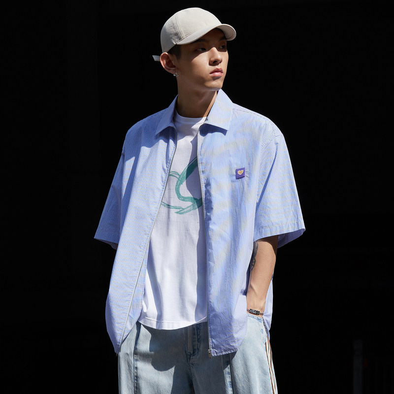 速写outlets奥莱男装夏季末折扣衬衣条纹短袖宽松棉质9N5210360