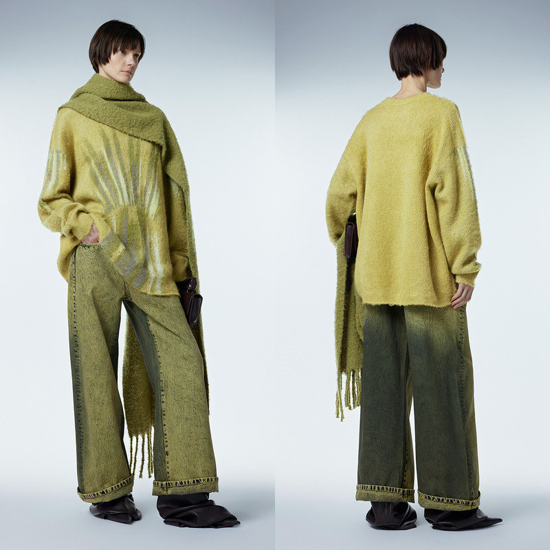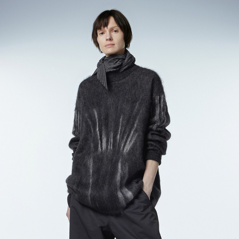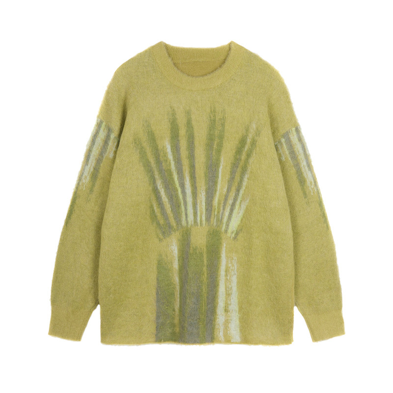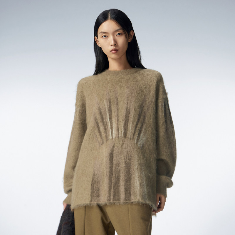 JNBY/江南布衣秋冬圆领马海毛针织衫女渐变几何涂鸦感休闲毛衣女
