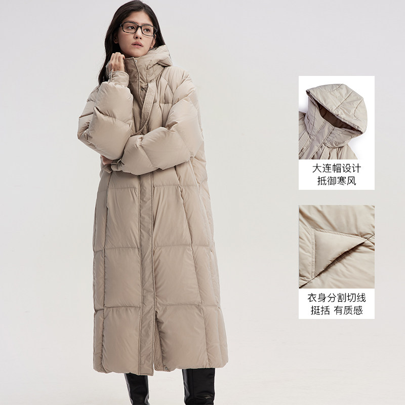 MSLAN泡芙羽绒/冬季氛围感90白鸭绒轻盈蓬松中长款连帽被子羽绒服