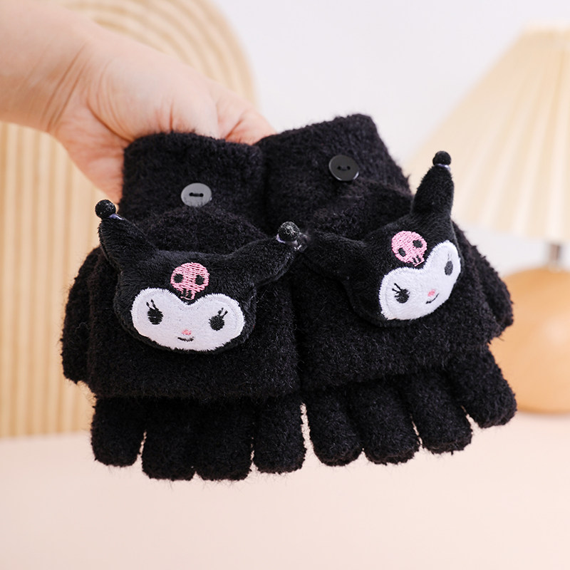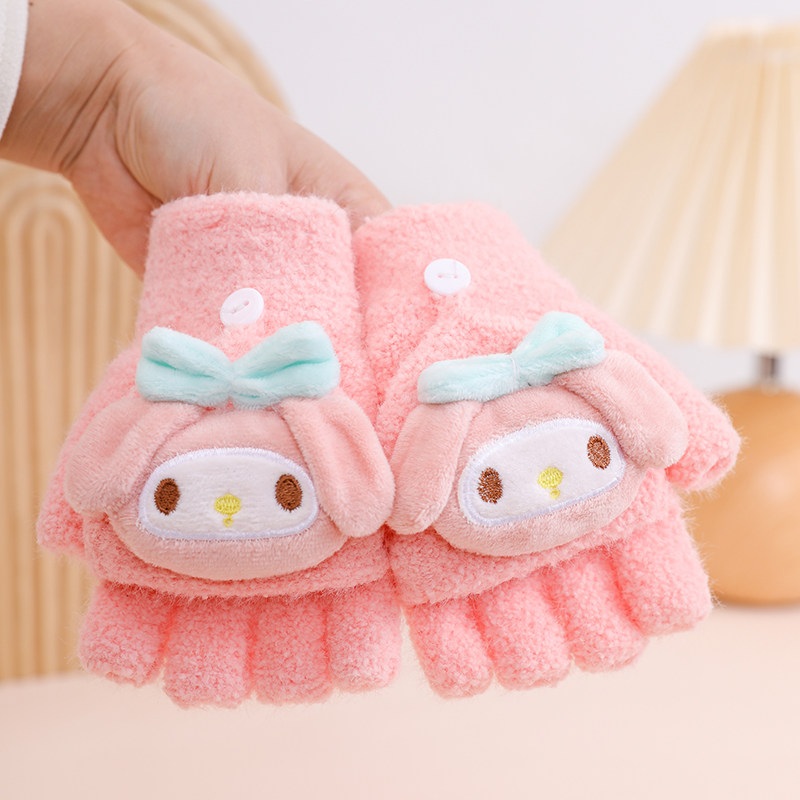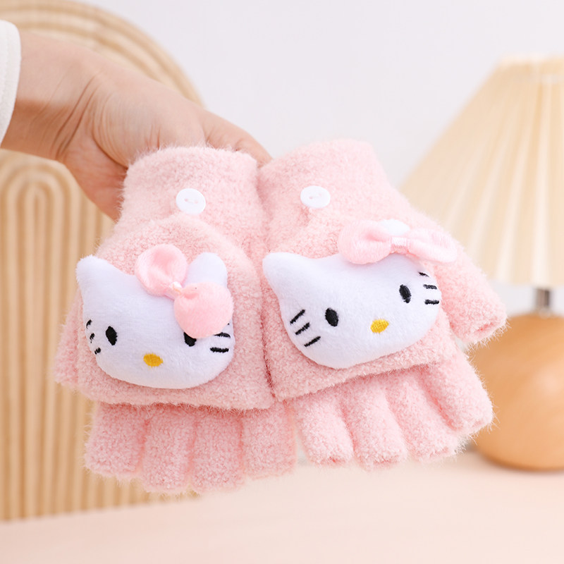 儿童手套半指翻盖冬天季保暖毛绒小学生女孩男童宝宝可爱露指写字