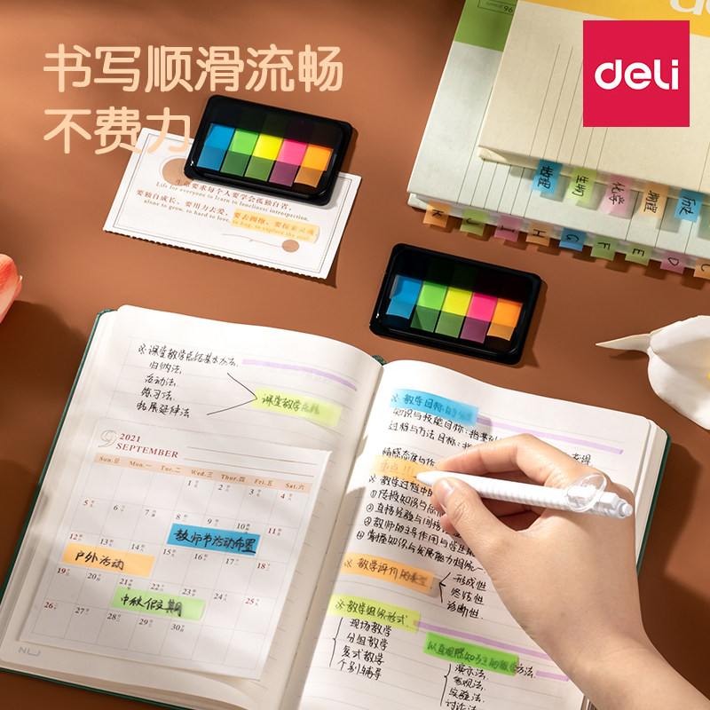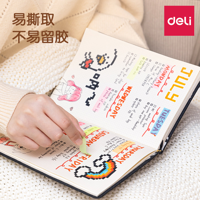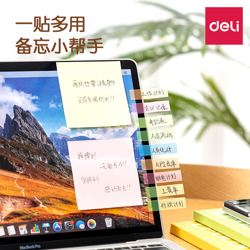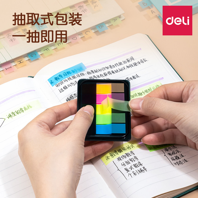 得力索引贴便利贴纸标签贴手账学生用荧光指示贴分类贴粘性记事贴