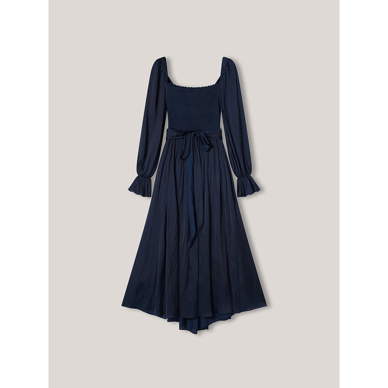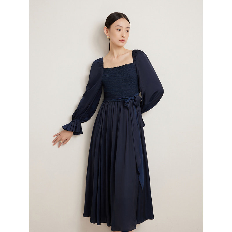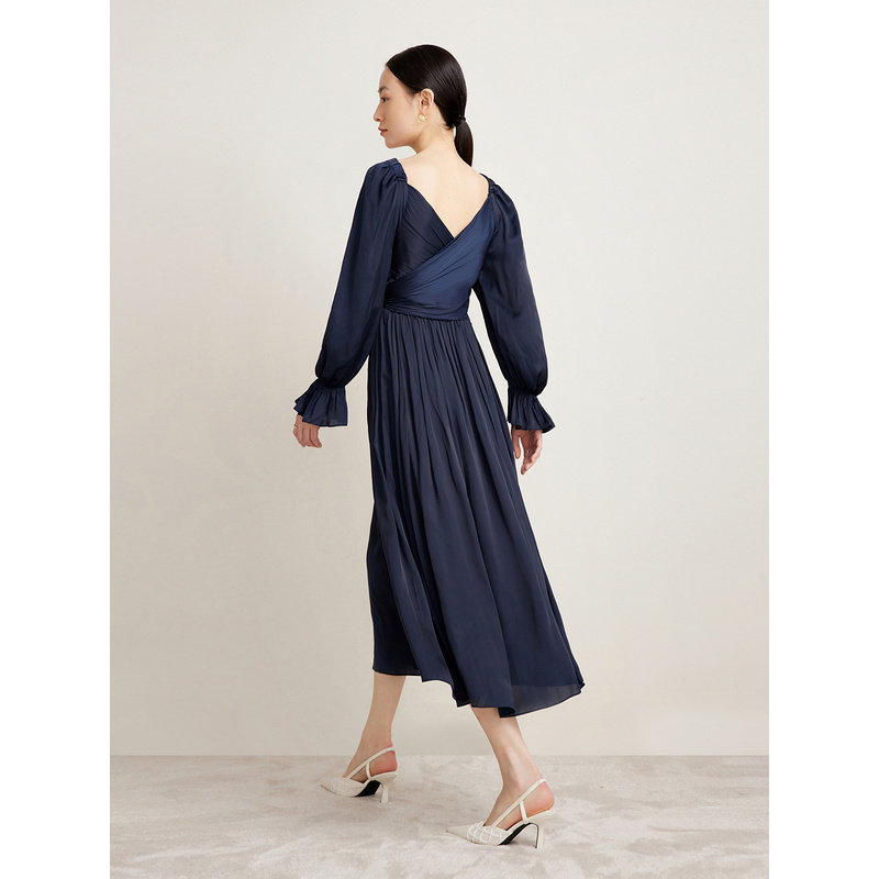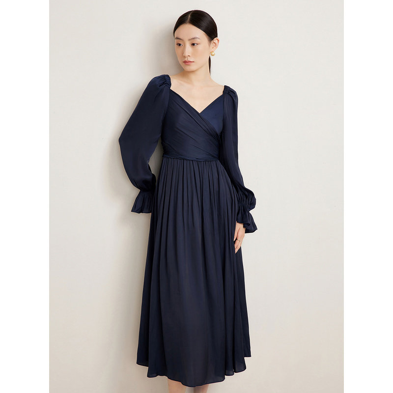 Goodland美地女装春季法式优雅复古交叠收腰A字连衣裙