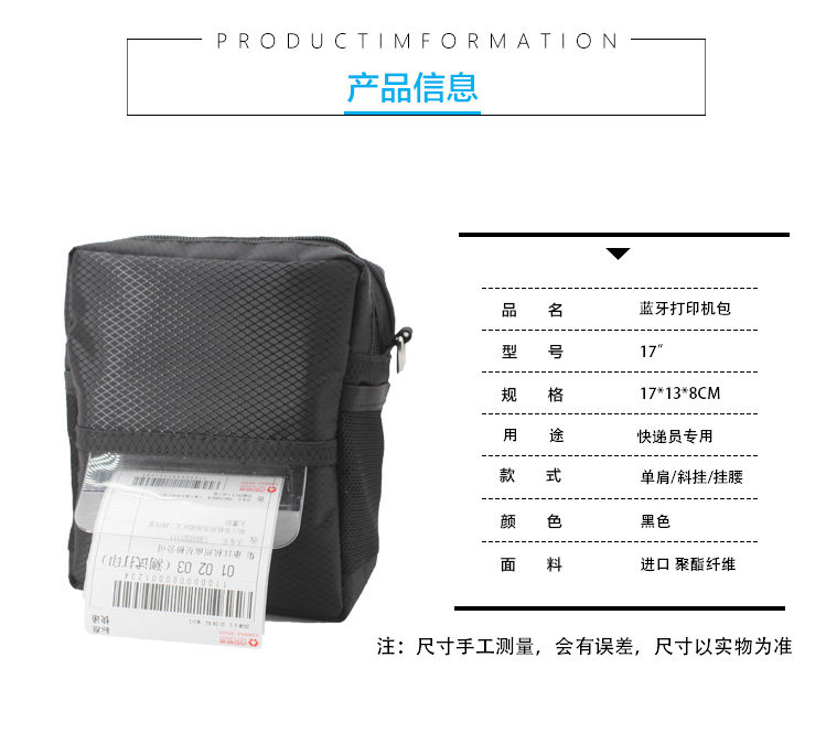 快递员用便携式蓝牙手持打印机包汉印启锐防水帆布单肩斜跨系腰包