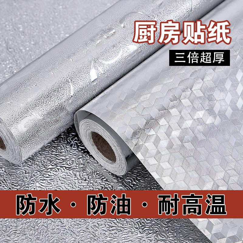 厨房防油贴纸防火耐高温灶台防水墙壁纸加厚自粘橱柜防潮铝箔锡纸