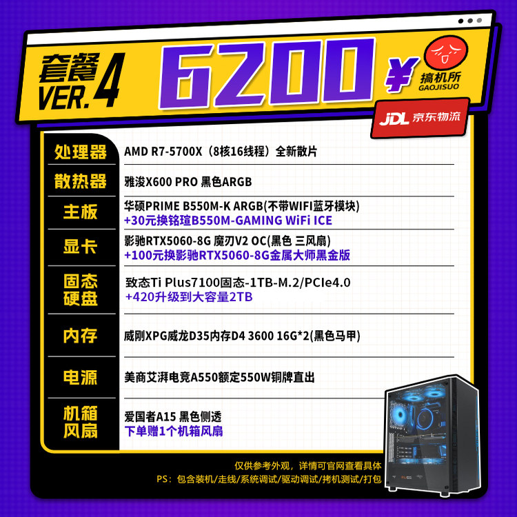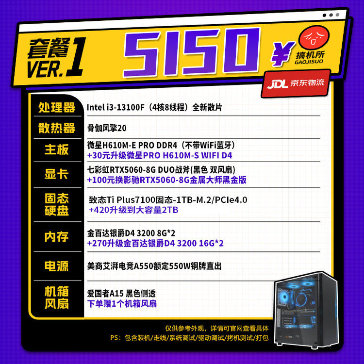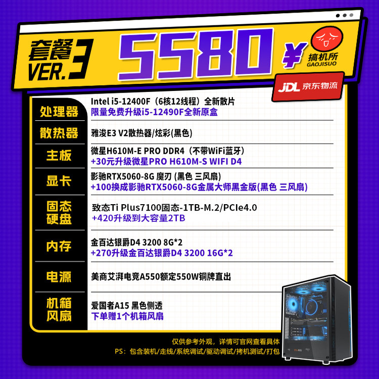 搞机所 12月特惠 i5-14400F/7500F 5060 8G 游戏 台式电脑 主机