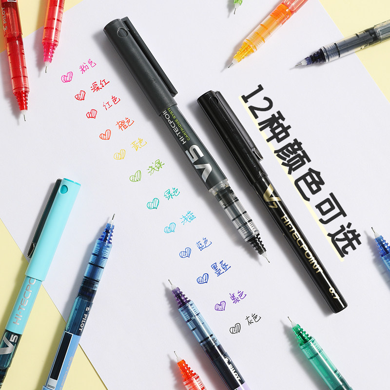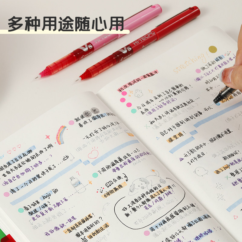 日本PILOT百乐BX-V5中性笔彩色针管笔BP-S啄木鸟圆珠笔蓝黑笔小V5