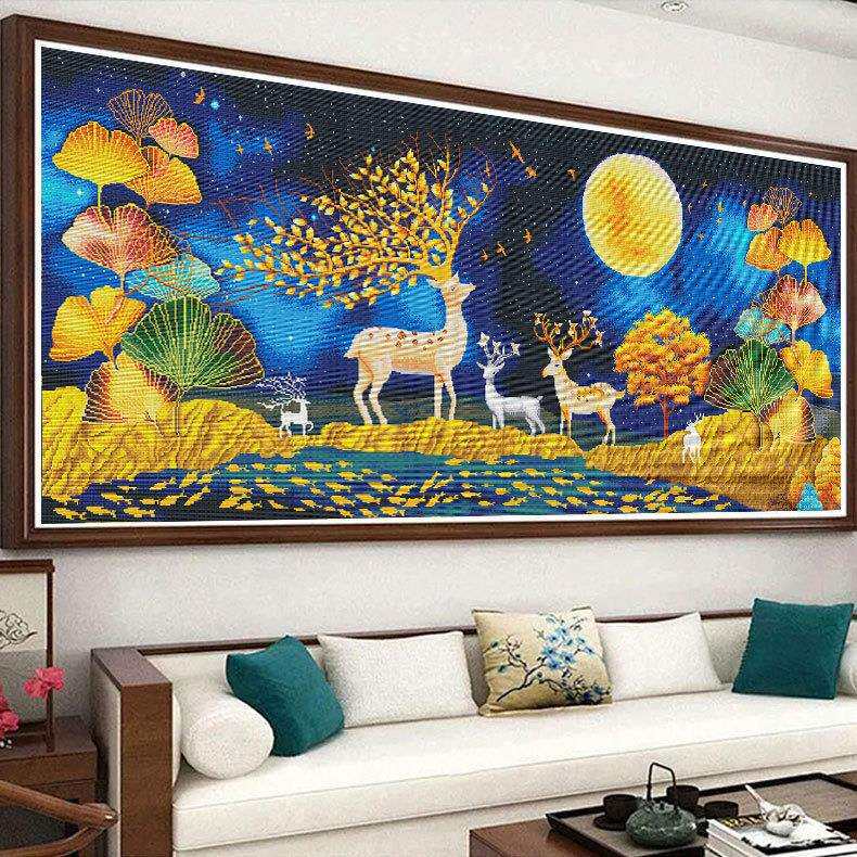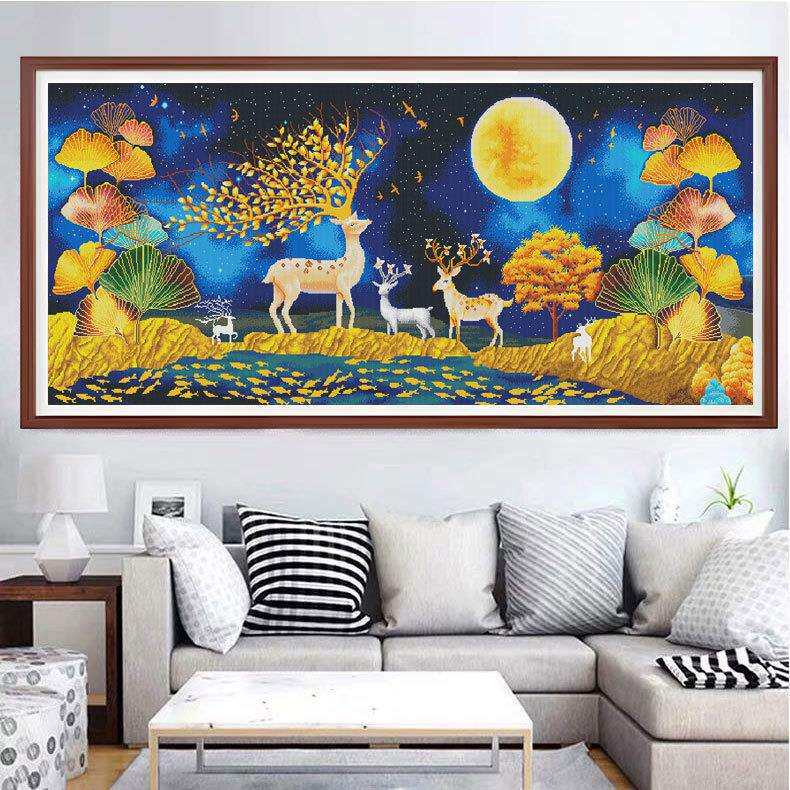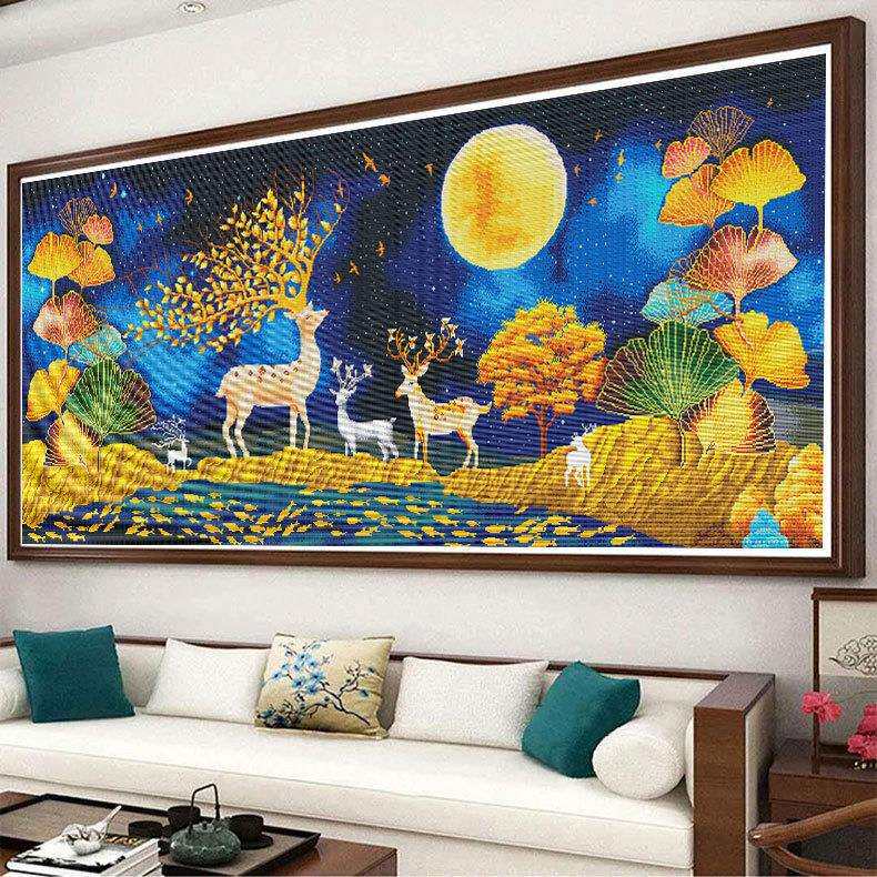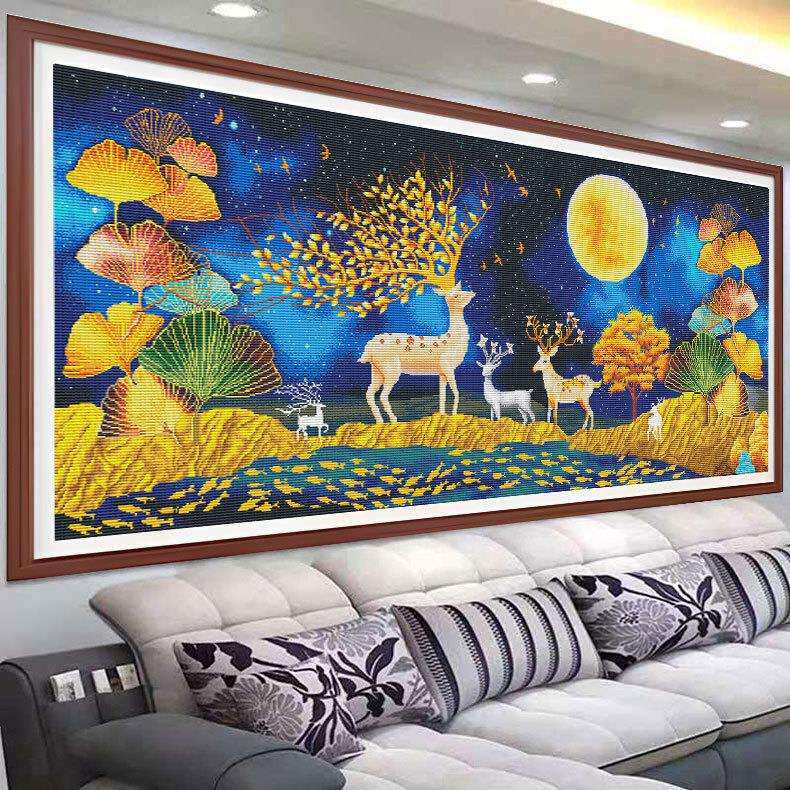 蒙娜丽莎十字绣新款银杏发财麋鹿客厅大幅风景简约现代手工自己绣