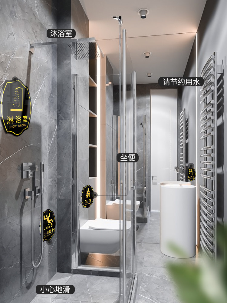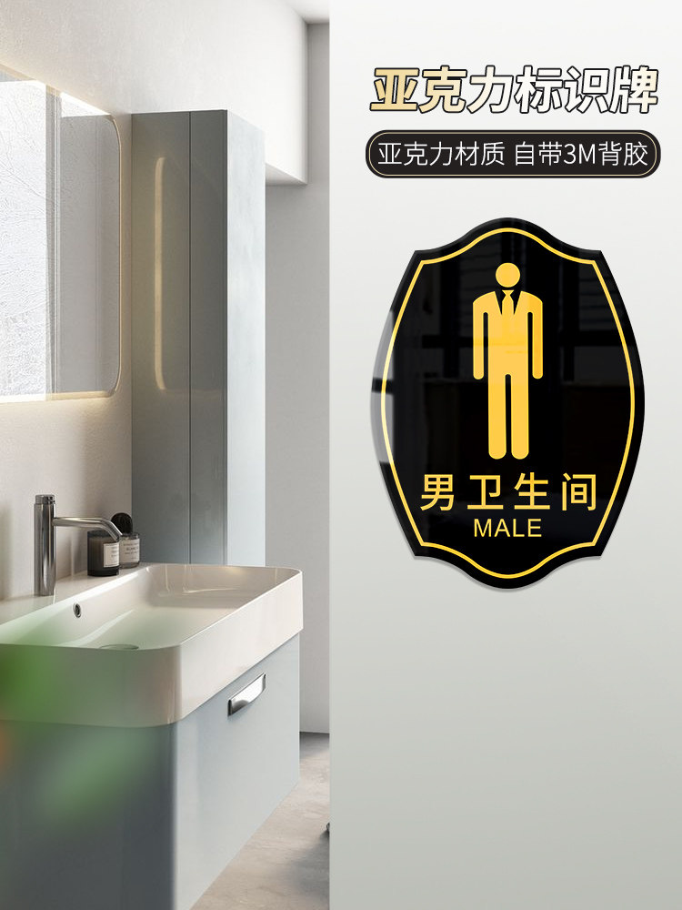 亚克力男女洗手间指示标牌厕所卫生间储物间门牌店铺试衣间温馨提示牌个性标语定制请节约用水用纸警示标识牌