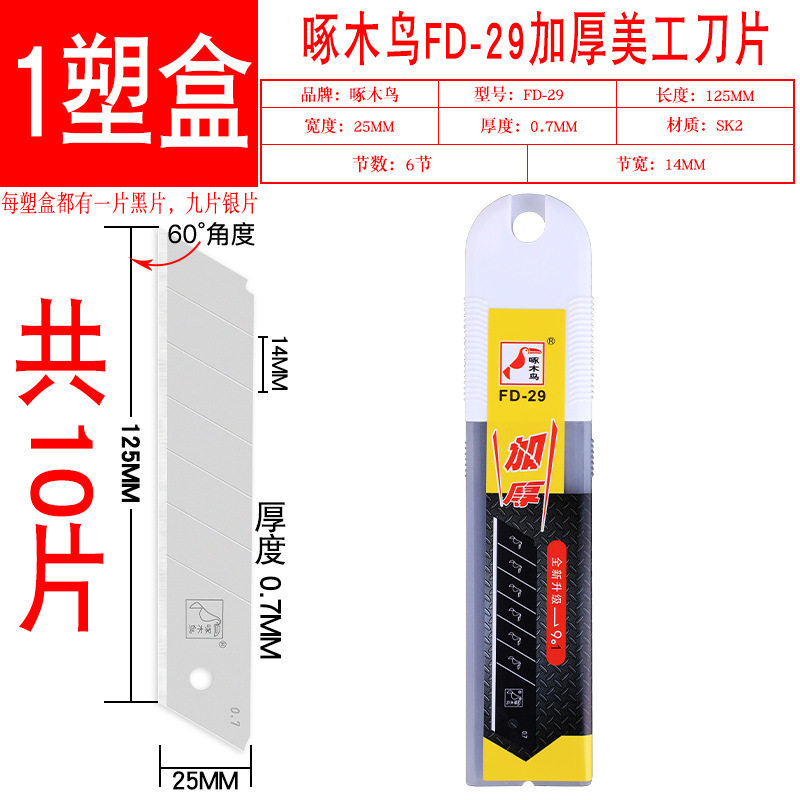 啄木鸟刀片FD-29大号加宽25mm重型美工刀片0.7mm厚 壁纸墙纸刀片耐用锋利大号美工刀刀片多功能包邮重型美工