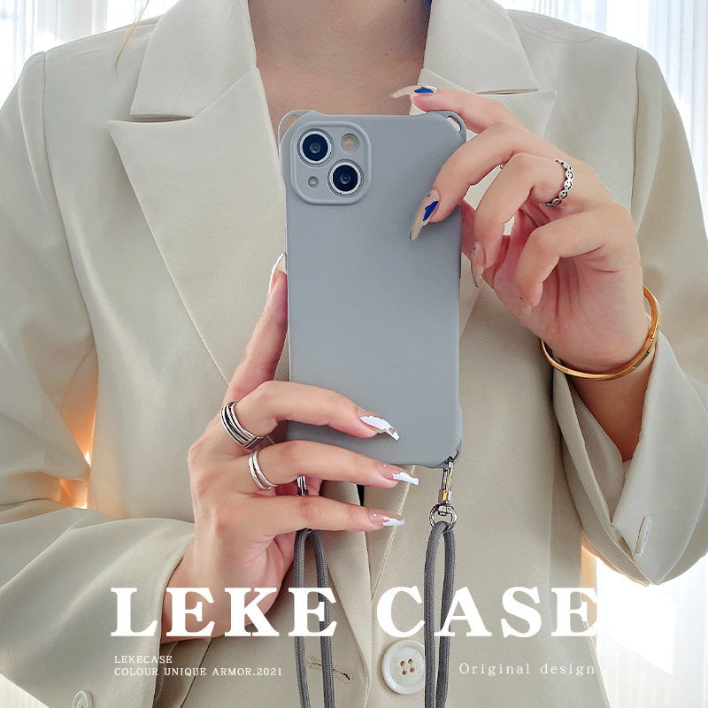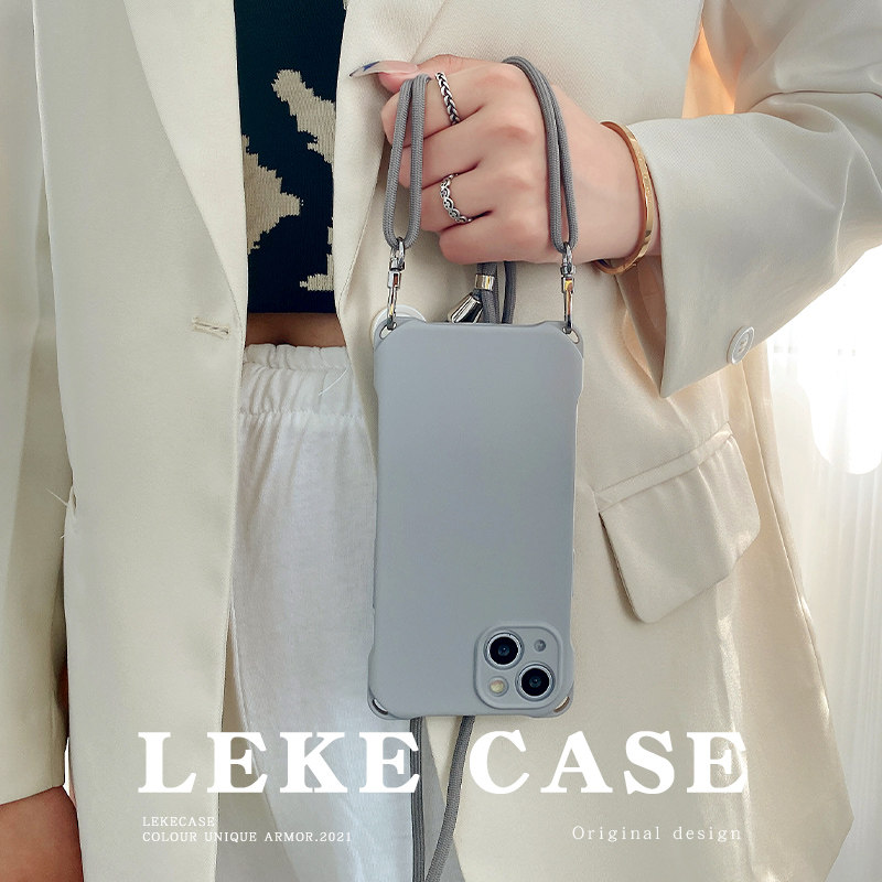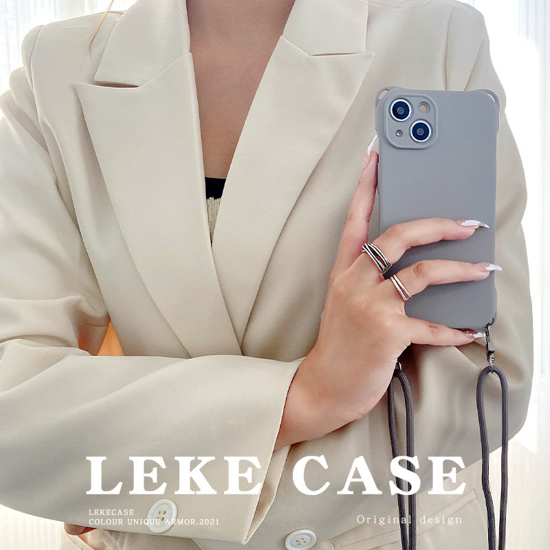 高级感灰色适用iphone15手机壳挂绳斜挎可背苹果16promax背带斜跨13情侣mate60pro纯色小米14ultra肩带17原创