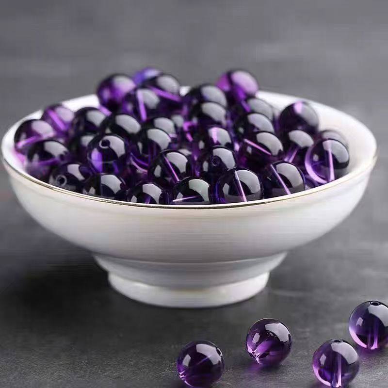 收藏级乌拉圭紫水晶圆珠散珠隔珠半成品多宝手串DIY玻璃体单珠