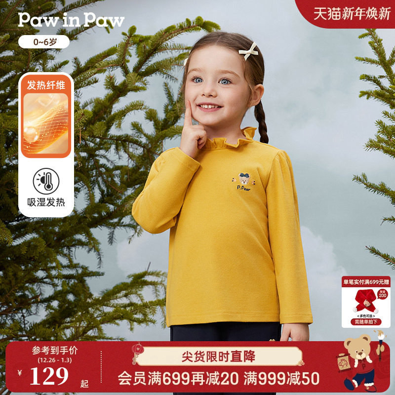 【发热纤维】PawinPaw卡通小熊童装25秋冬新款男女宝宝打底衫T恤