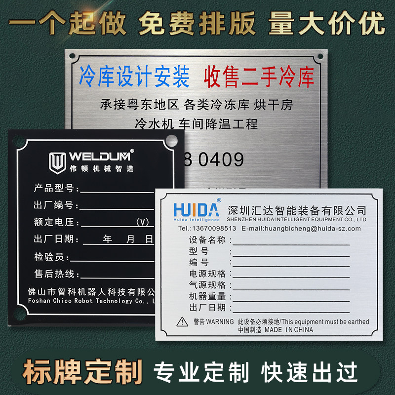 订制铝牌不锈钢标识牌腐蚀丝印铭牌定做电机铜牌机器设备标牌制作