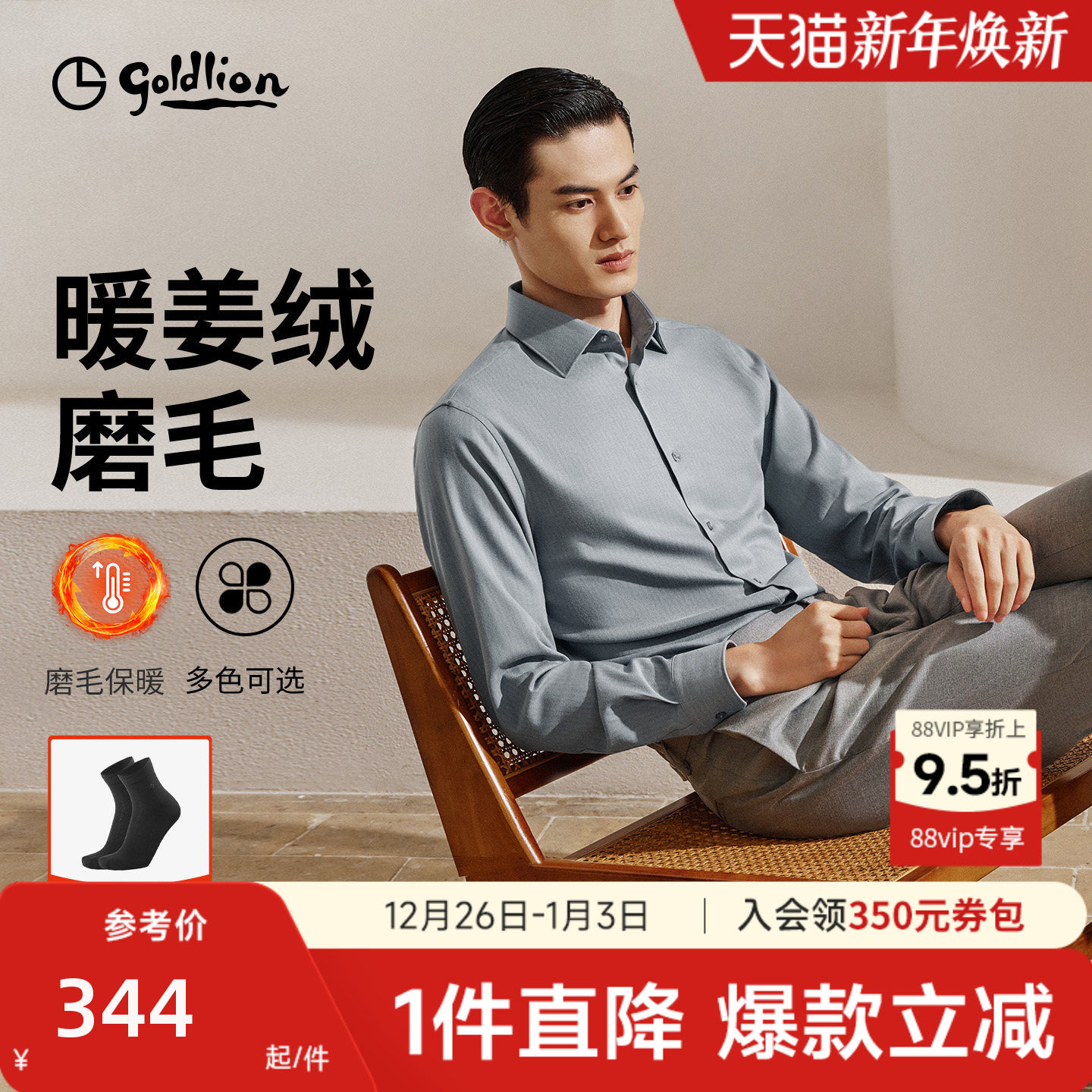 【磨毛】金利秋冬新款男士长袖衬衫弹力暖感商务正装衬衣男上衣
