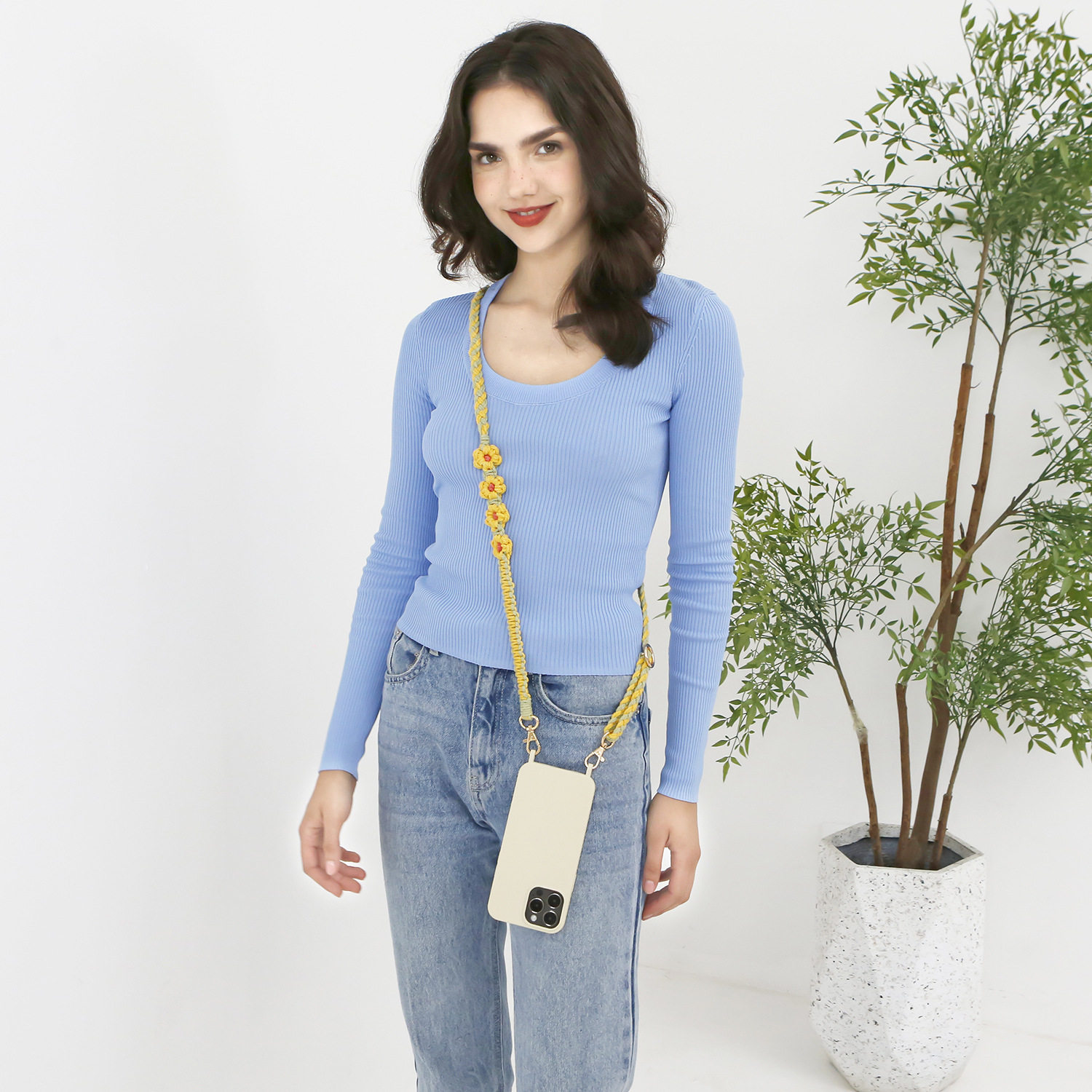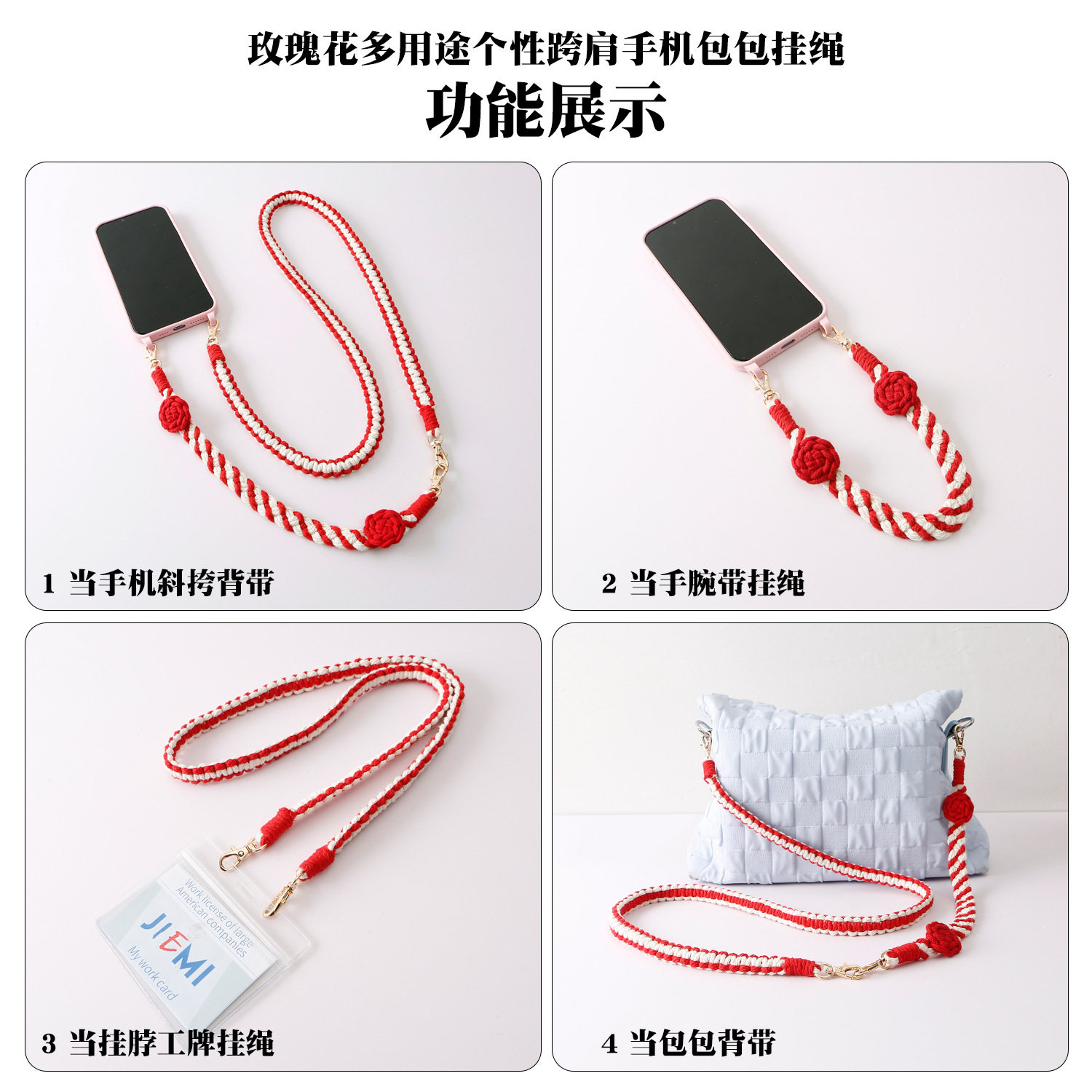波西米亚手工编织手机绳斜挎可调节斜跨花朵菊花小雏菊电话挂绳
