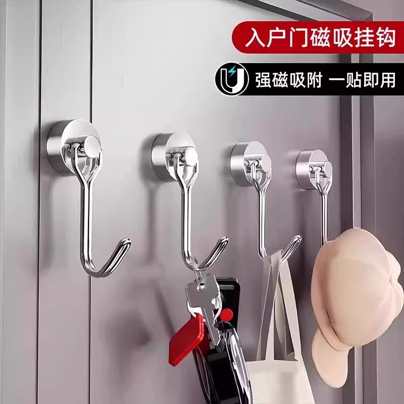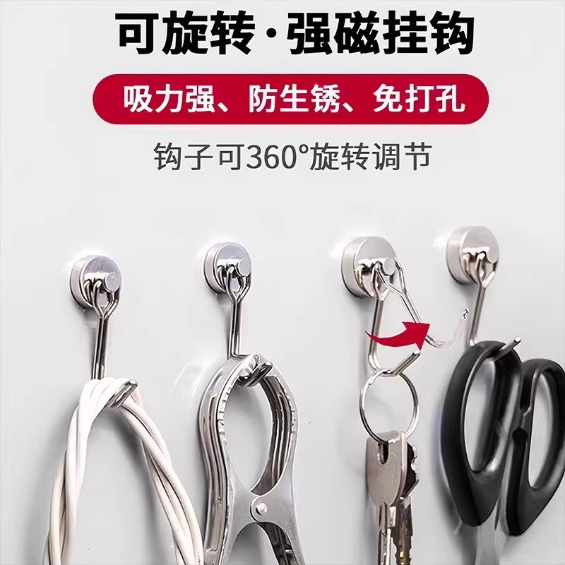磁吸挂钩免打孔强力磁铁吸铁石小挂钩冰箱门后挂钥匙旋转磁力挂钩