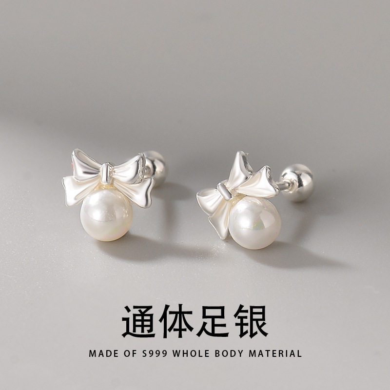 S999新款韩版清新甜美蝴蝶结珍珠耳钉女小巧精致时尚耳饰品