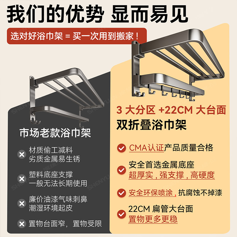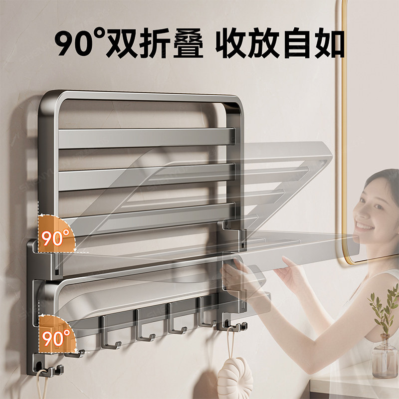 毛巾架卫生间浴巾架免打孔一体挂架套件厕所洗澡间浴室架子置物架