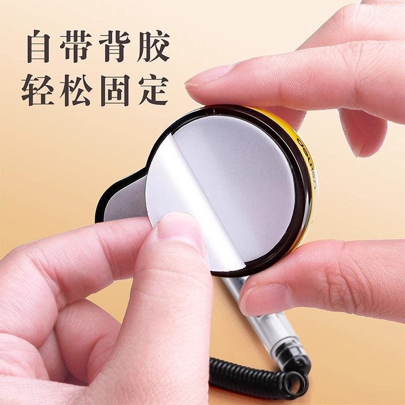 得力台笔银行柜台酒店前台吧台中性笔可爱笑脸可粘固定桌面防丢连带绳子的笔微笑带线笔座办公商务台式签字笔