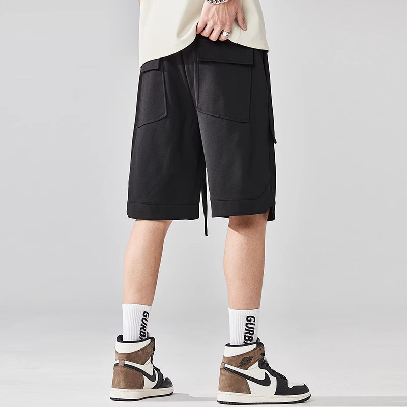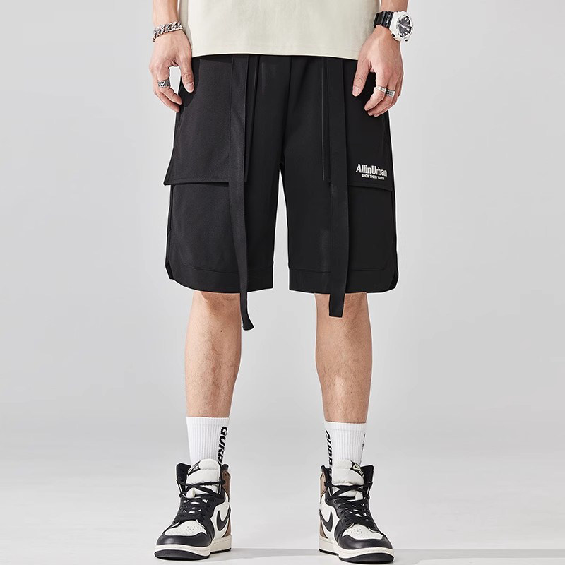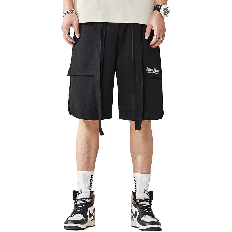 ALLIN 黑色休闲短裤男夏季薄款美式高街运动五分裤潮牌潮流中裤子