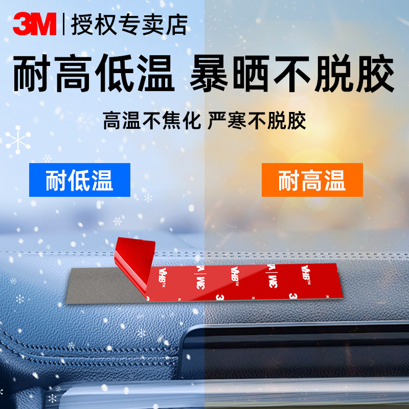 3M双面胶强力高粘度墙面粘墙无痕胶贴汽车车载行车记录仪固定贴摆件不留痕背胶防水防潮耐高温VHB泡棉胶加厚