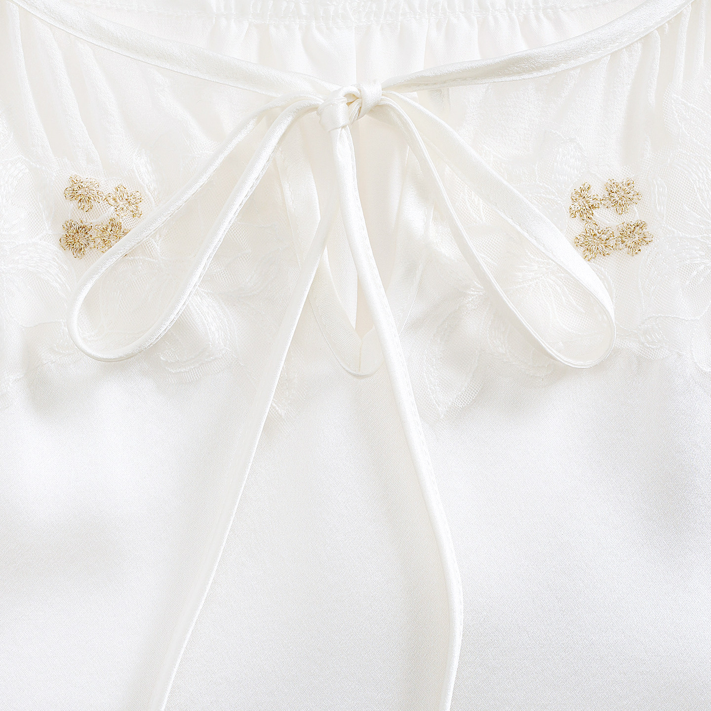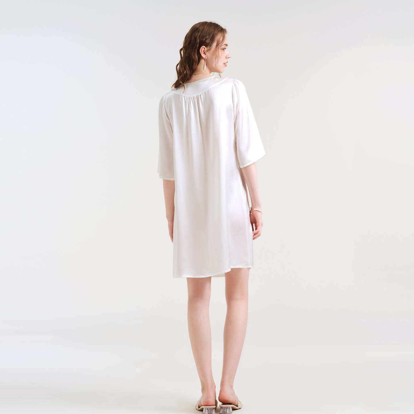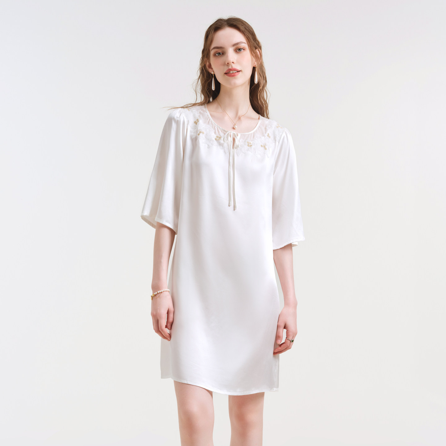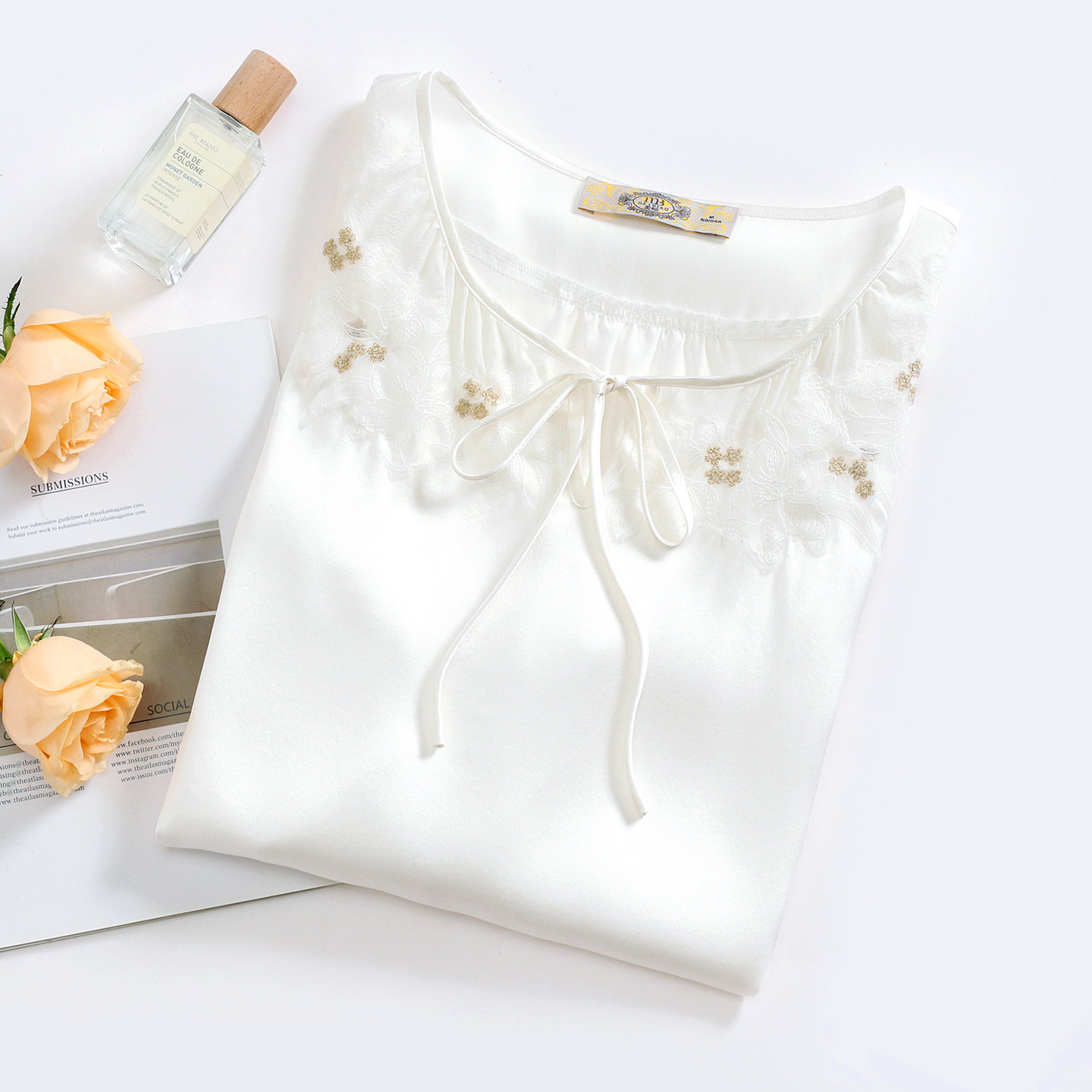 美标新款19姆米重磅七分袖真丝睡裙桑蚕丝蕾丝睡衣冰氧凉感家居服