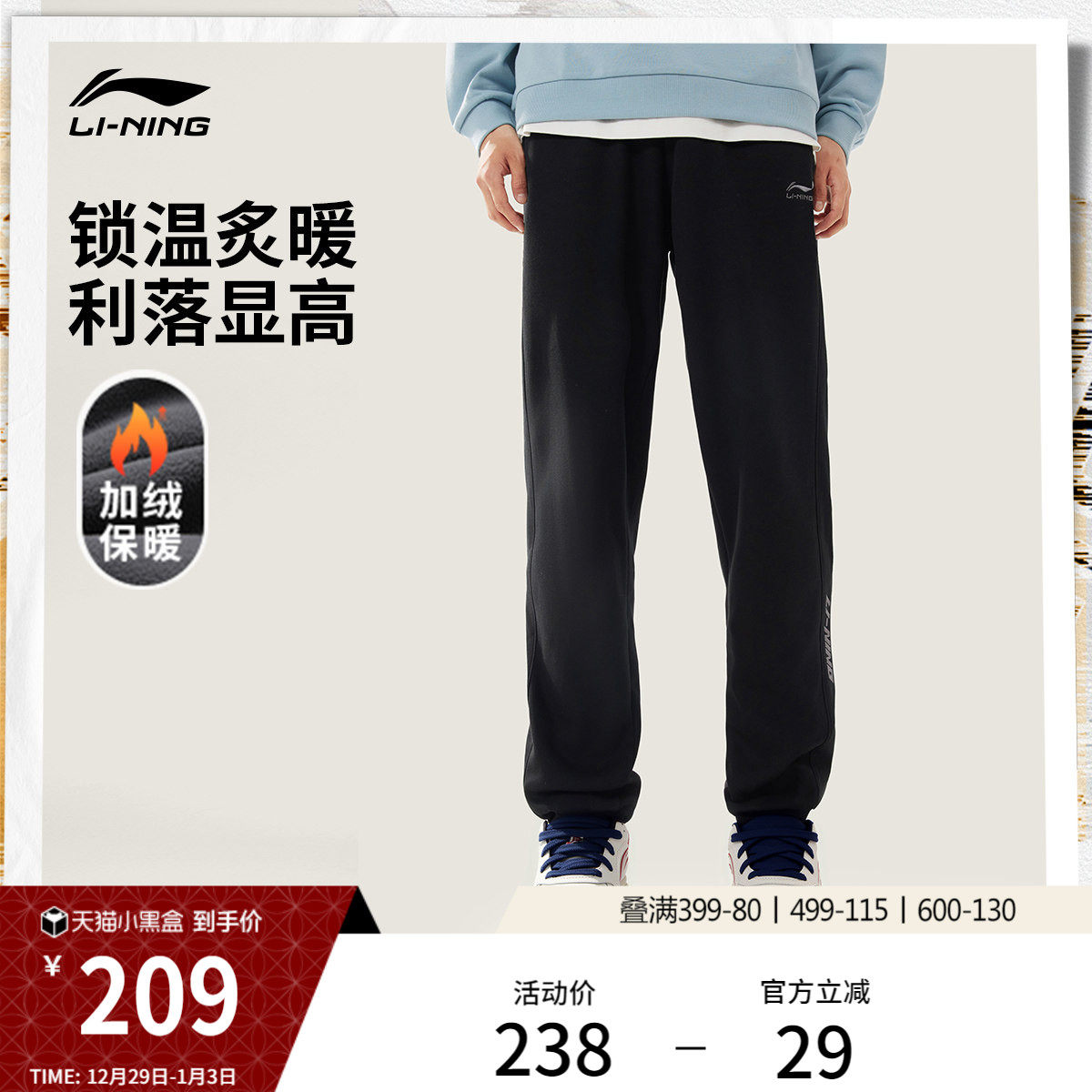 鸿星尔克运动裤男士冬季卫裤加绒男裤男生裤子直筒长裤加厚休闲裤