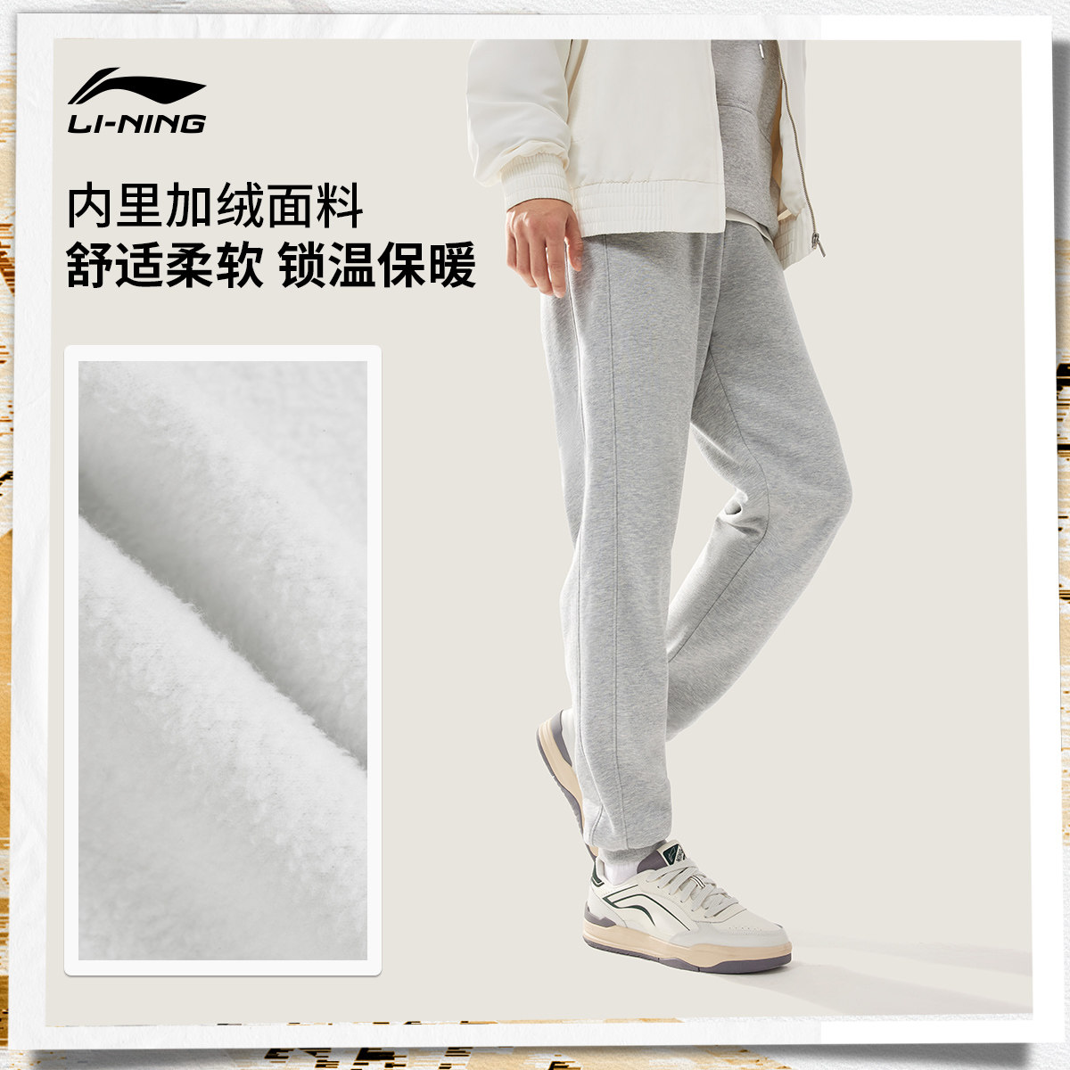 李宁卫裤男士2025新款休闲跑步裤子加绒保暖环保冬季束脚运动裤