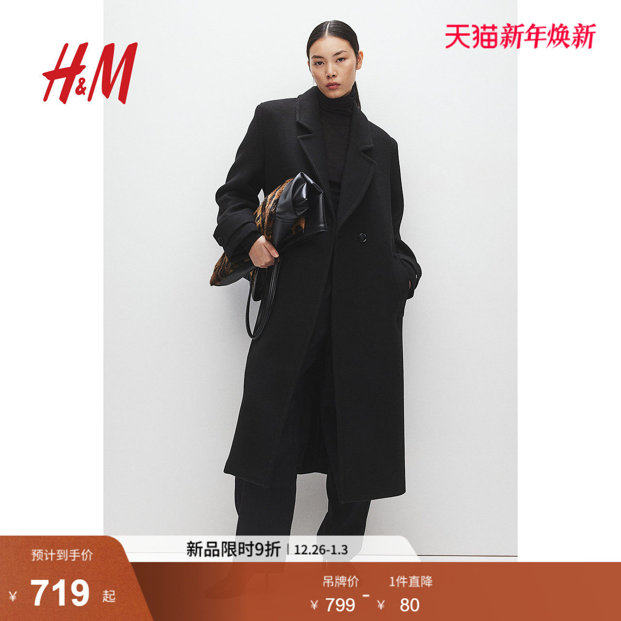 HM女装毛呢外套冬季保暖长款加厚气质长大衣老钱风风衣1240720
